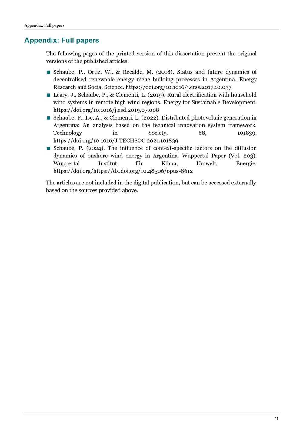 The influence of endogenous and exogenous factors on the diffusion dynamics of renewable energy innovations in Argentina / by Philipp Christian Schaube