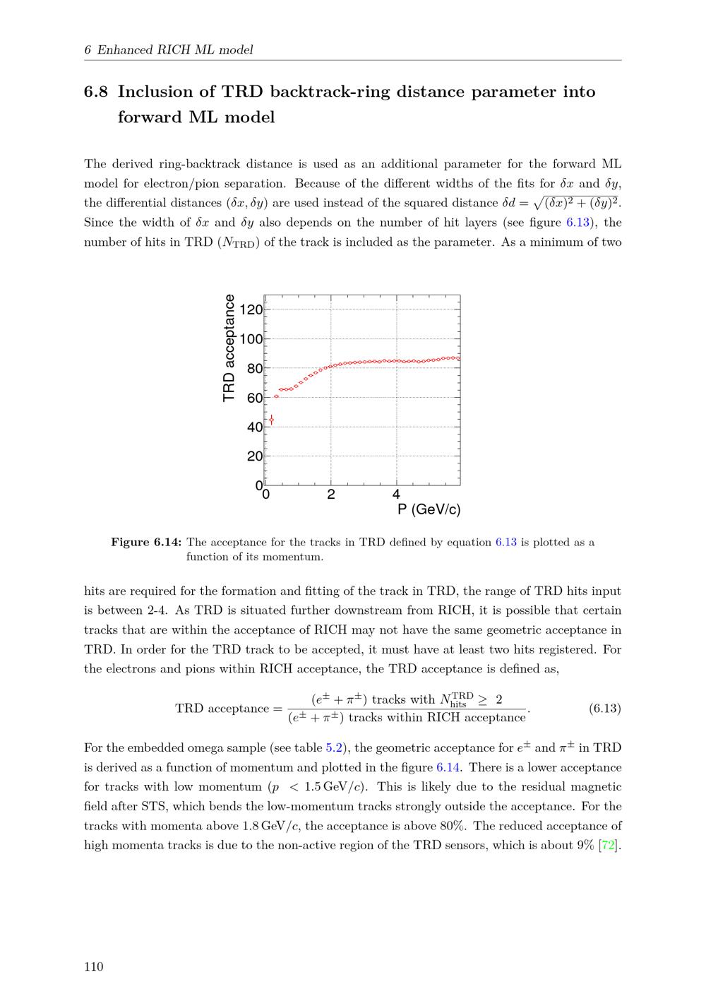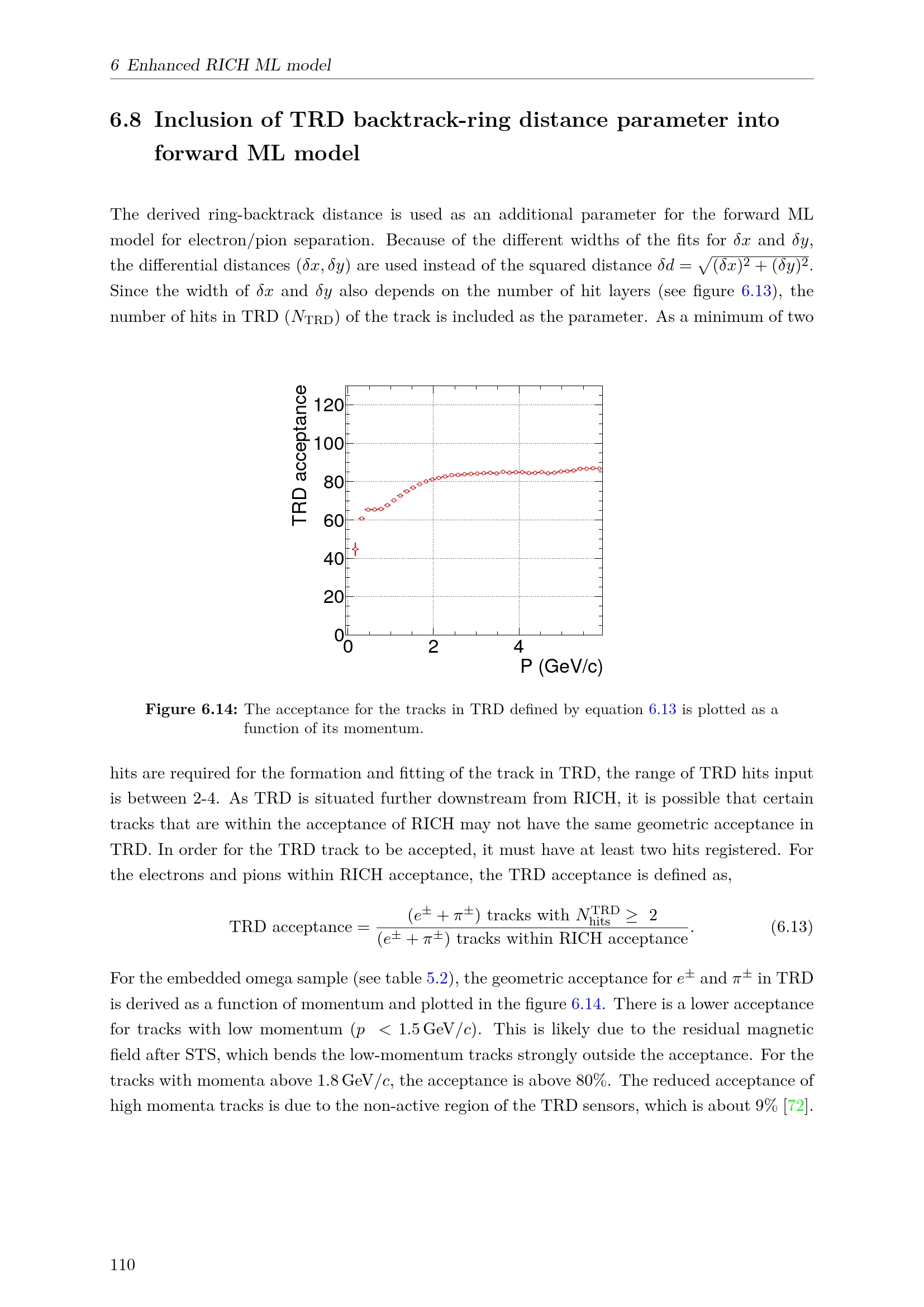 Inclusion of TRD backtrack-ring distance parameter into forward ML model