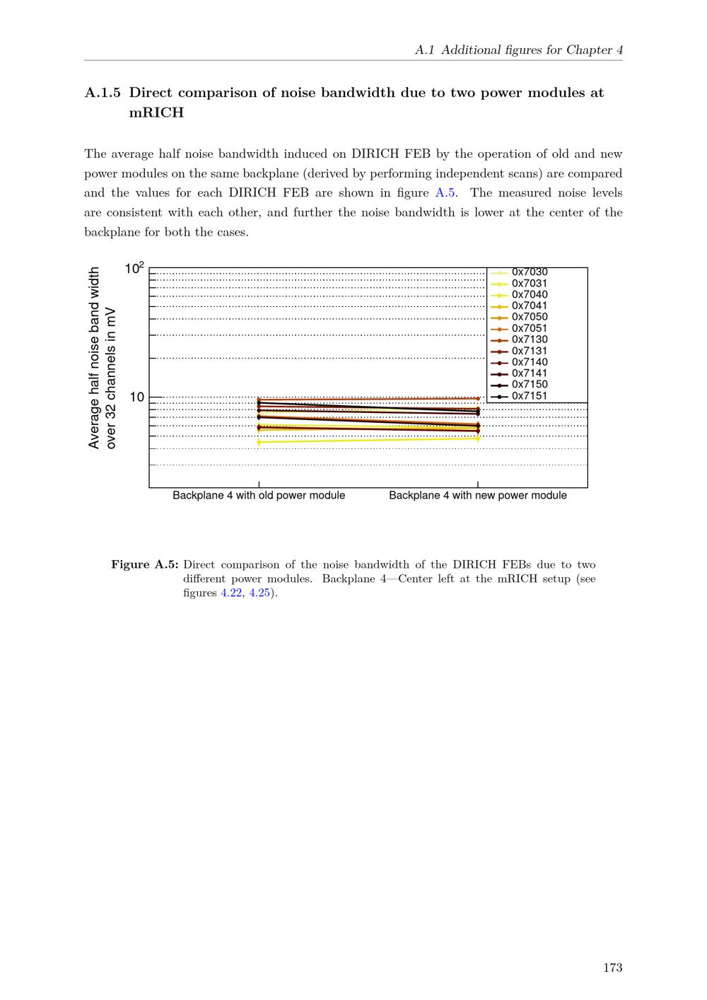Direct comparison of noise bandwidth due to two power modules at mRICH