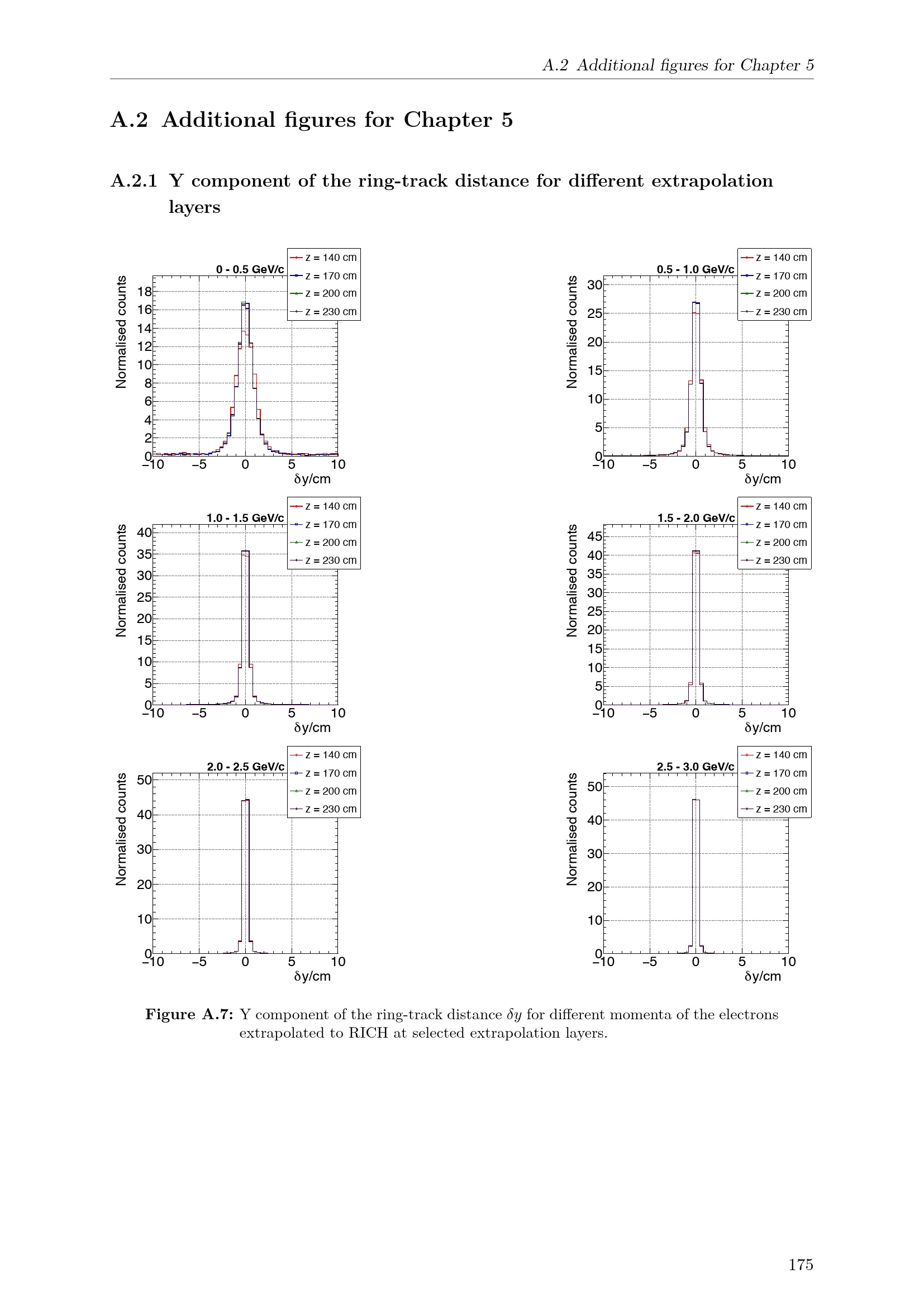 Y component of the ring-track distance for different extrapolation layers