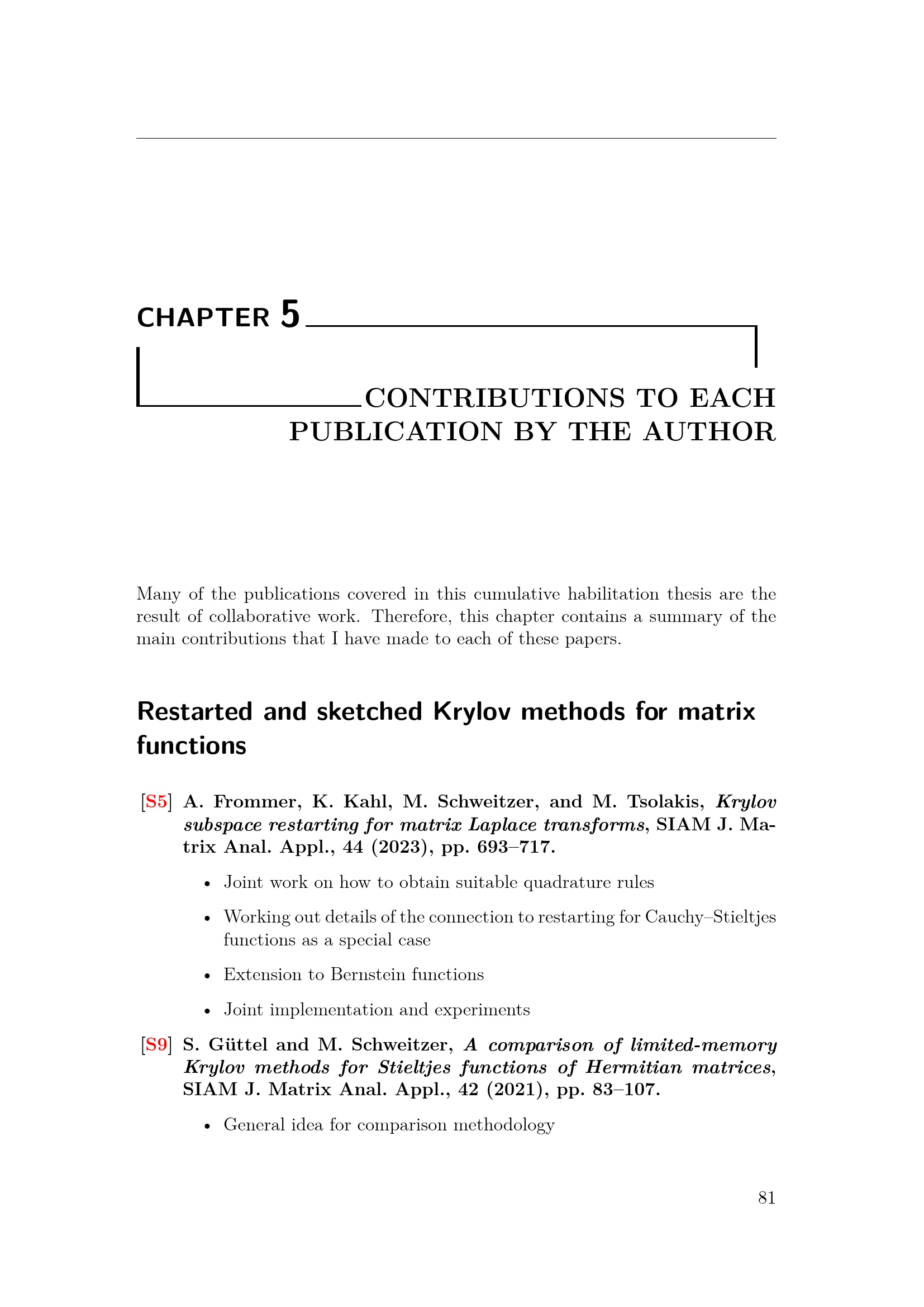 Topics in the computation of matrix functions : Fréchet derivatives, low-rank updates, decay bounds and limited-memory algorithms / Marcel Schweitzer