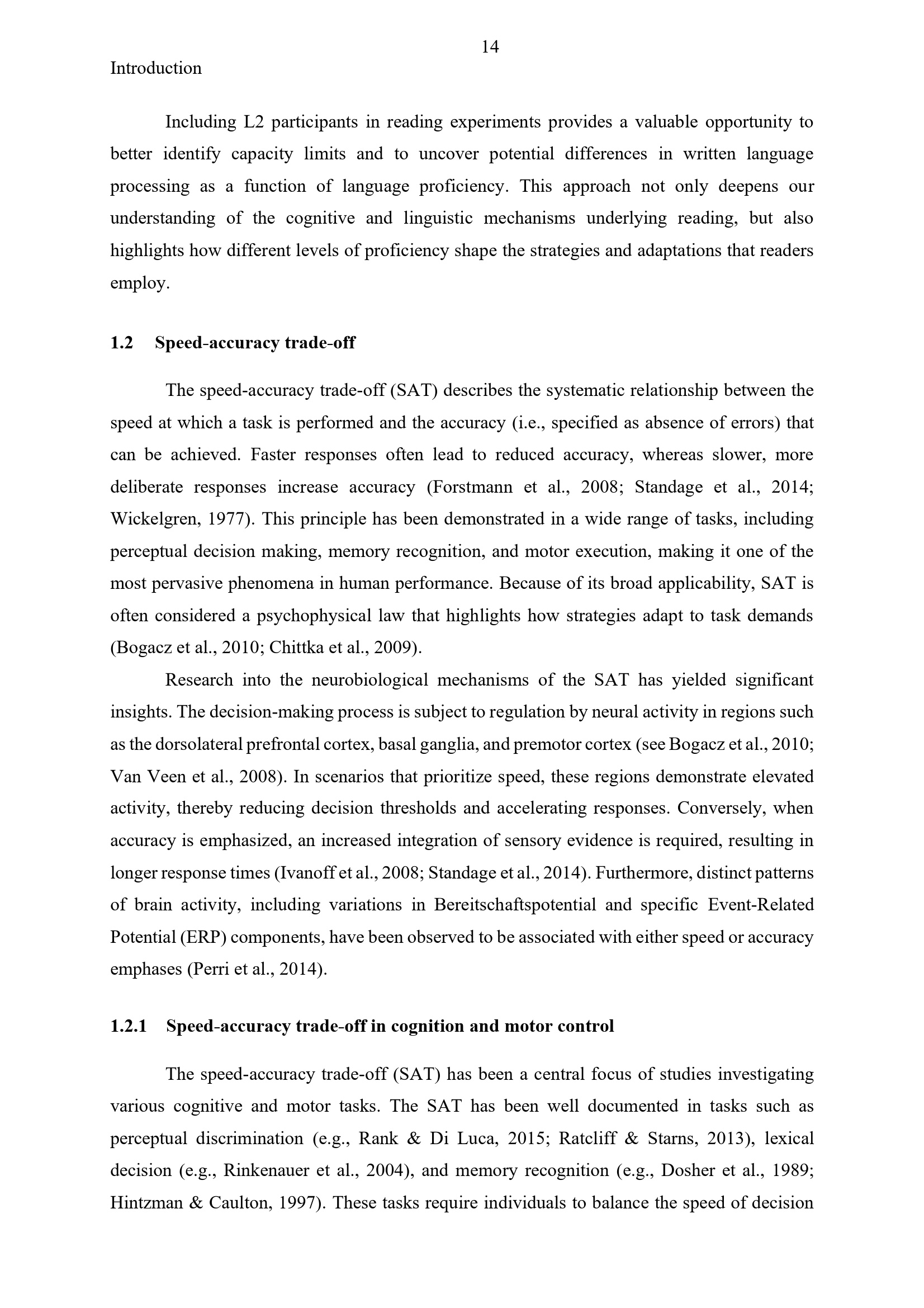 1.2.1 Speed-accuracy trade-off in cognition and motor control