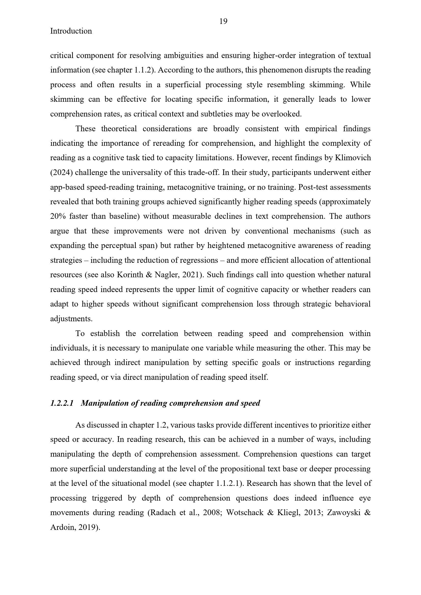 1.2.2.1 Manipulation of reading comprehension and speed