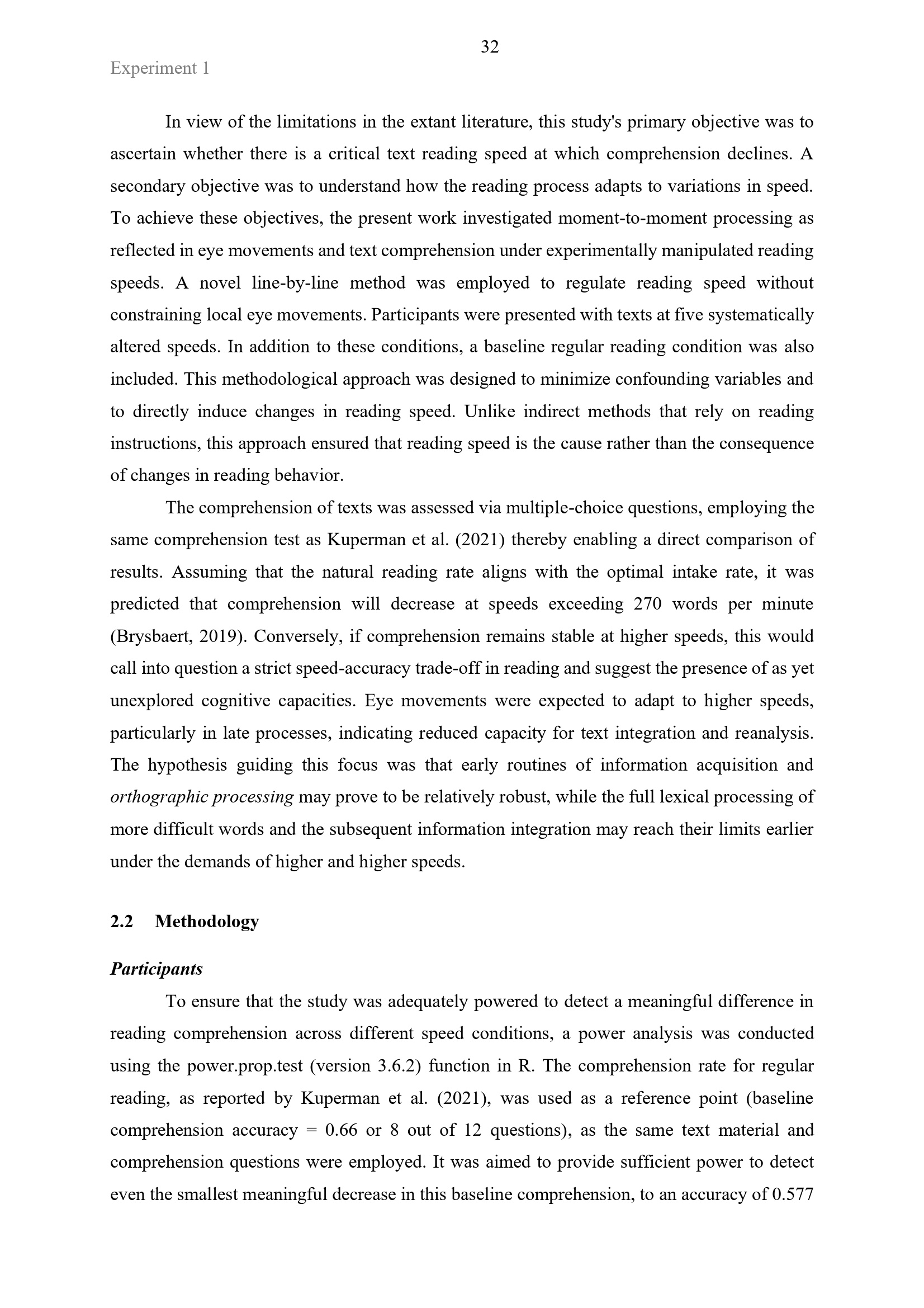2 Experiment 1: Effects of reading speeds on word processing and comprehension