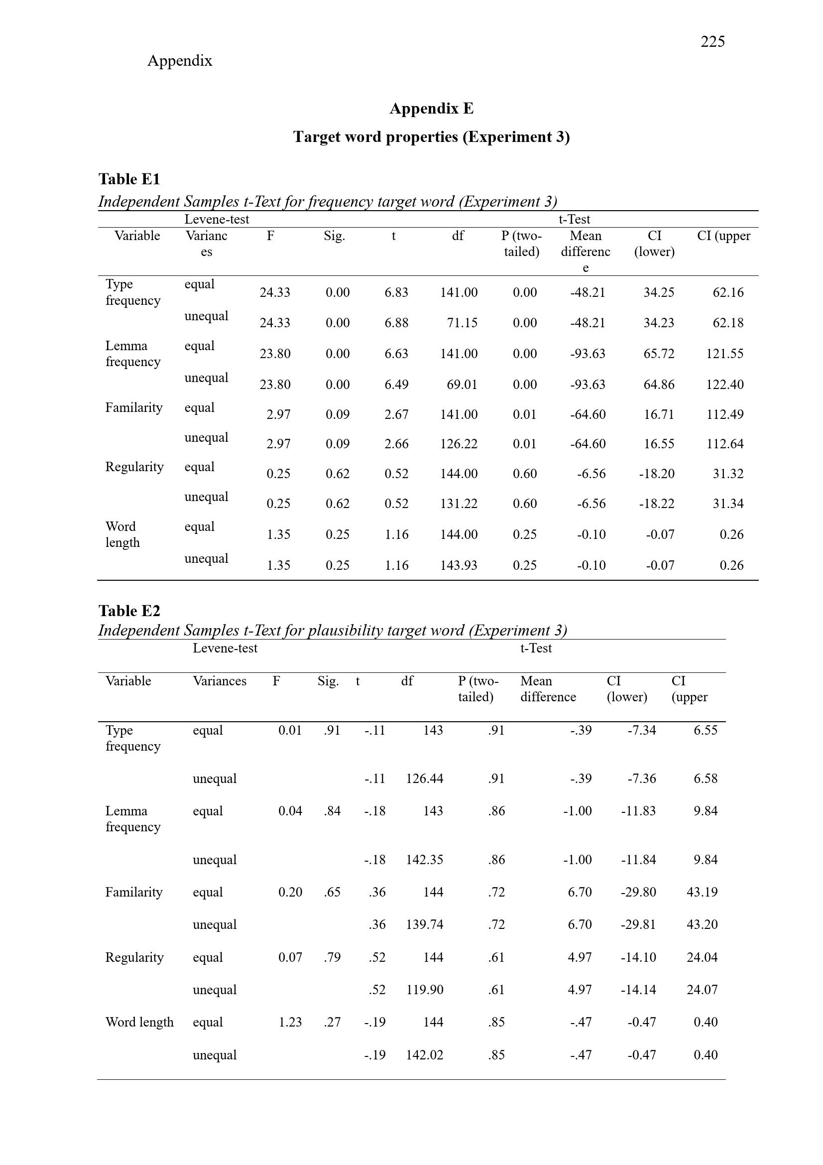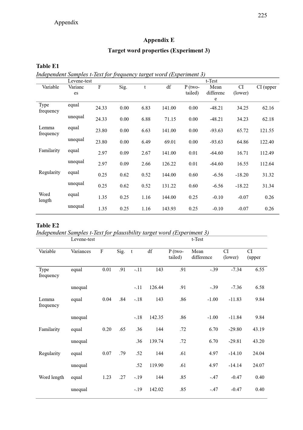 Appendix E Target word properties (Experiment 3)