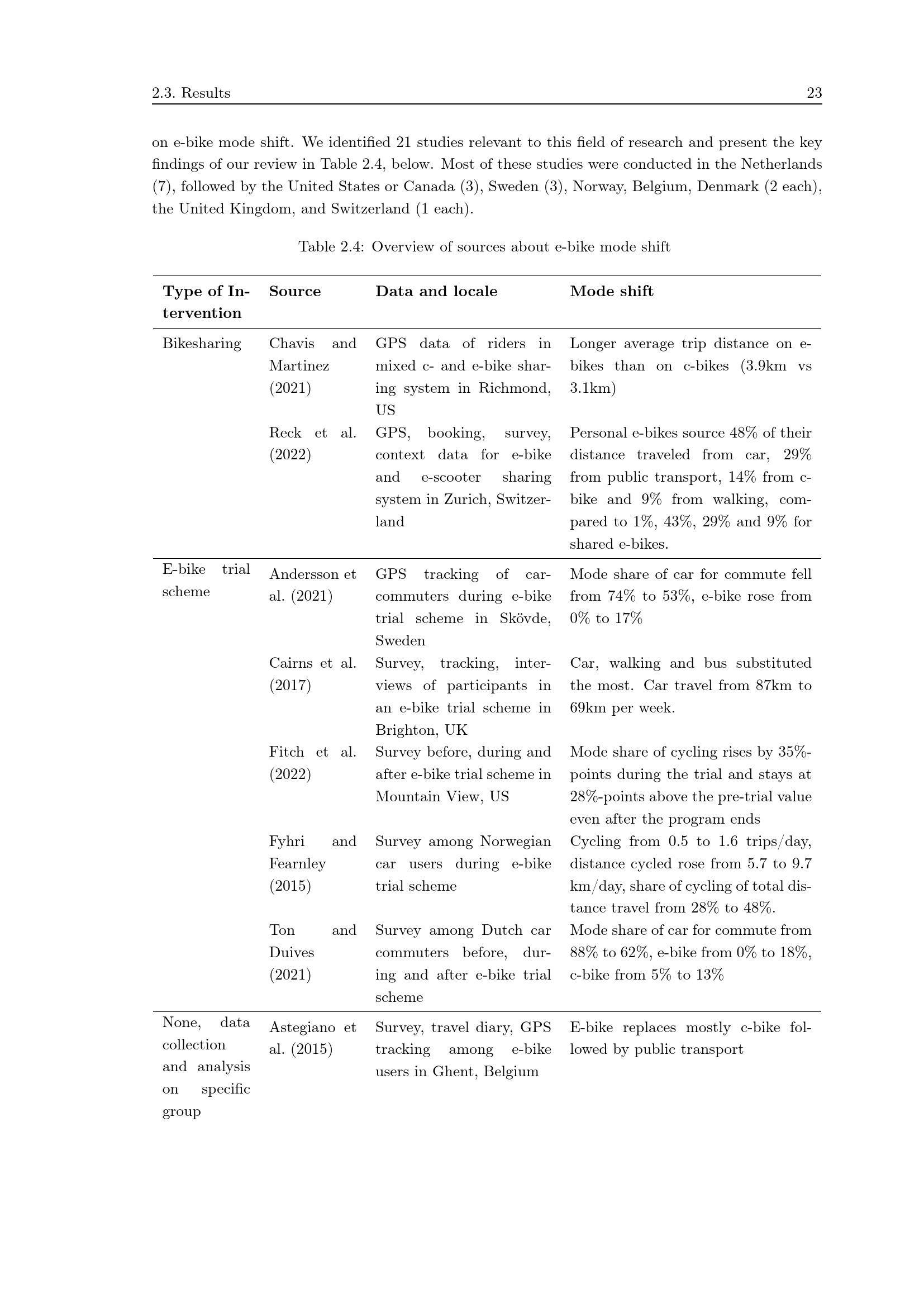 Research Field 3: Impacts of E-Bikes on Mode Choice