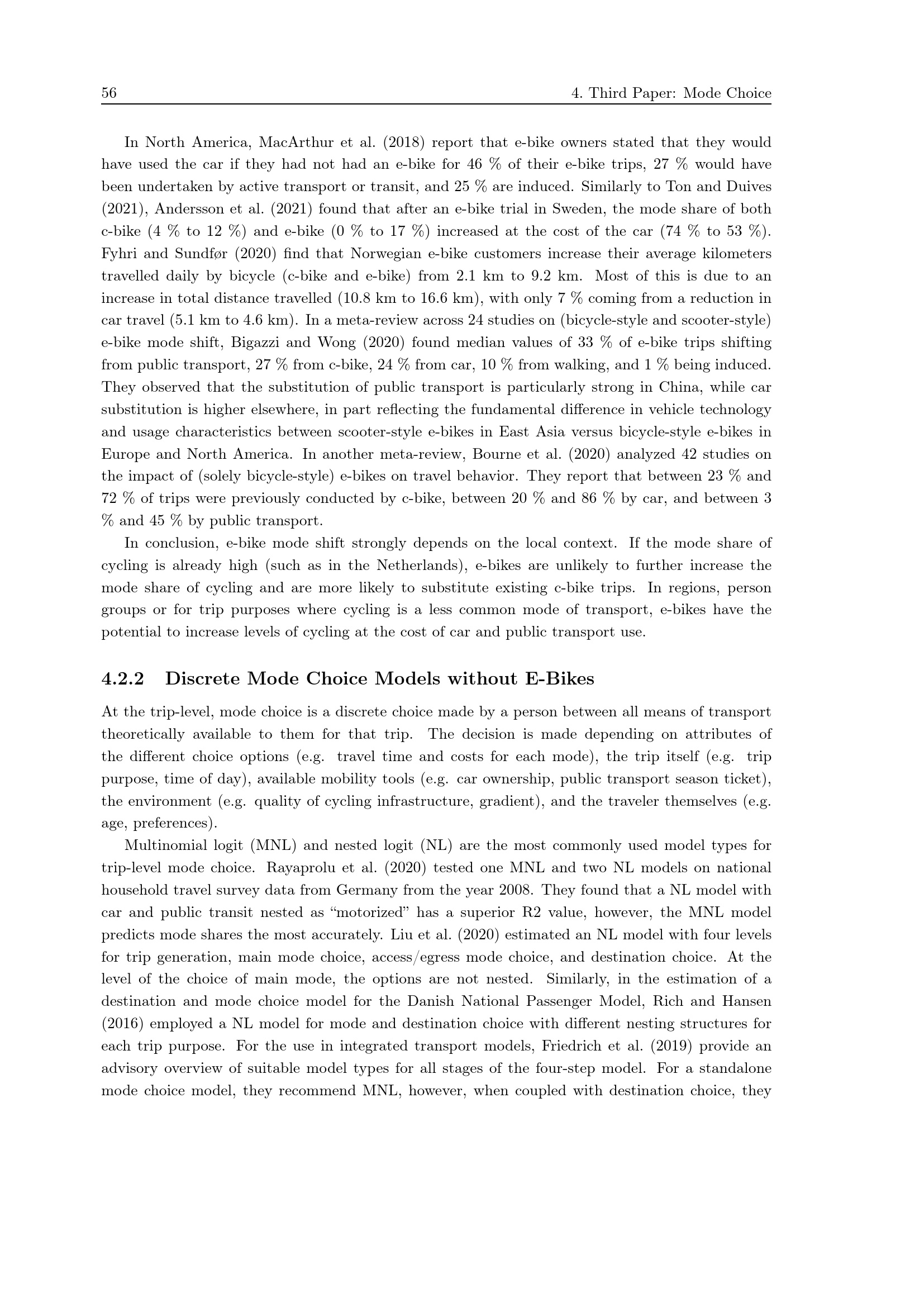 Discrete Mode Choice Models without E-Bikes
