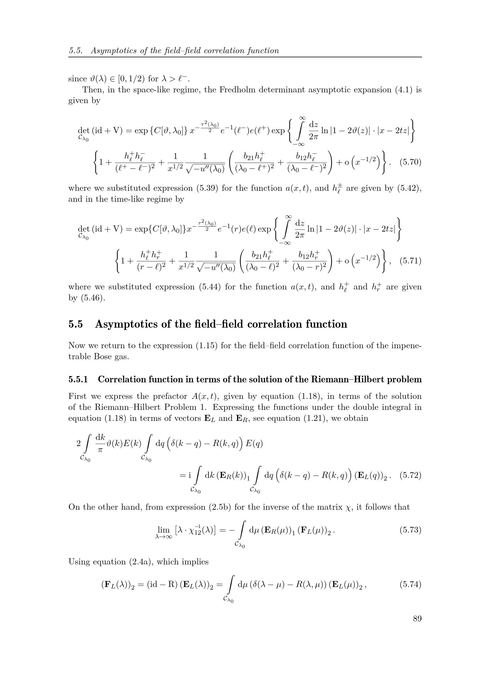 5.5 Asymptotics of the field–field correlation function