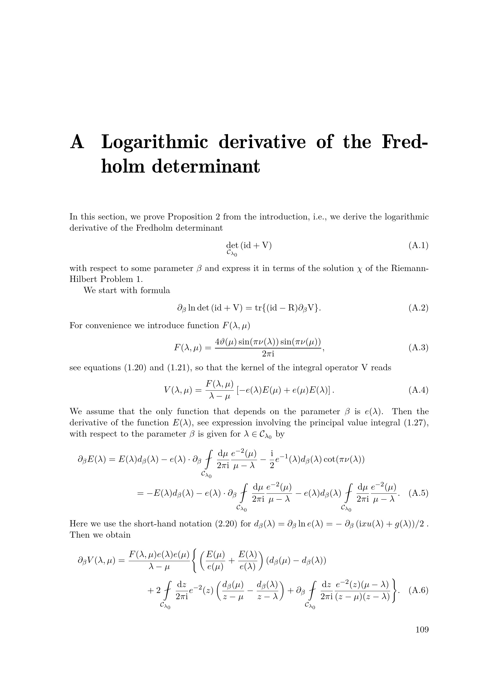A Logarithmic derivative of the Fredholm determinant