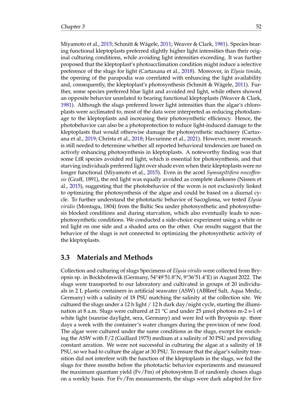 The Phototactic Behavior of the Kleptoplastic Sea Slug Elysia viridis (Montagu, 1804)[...]