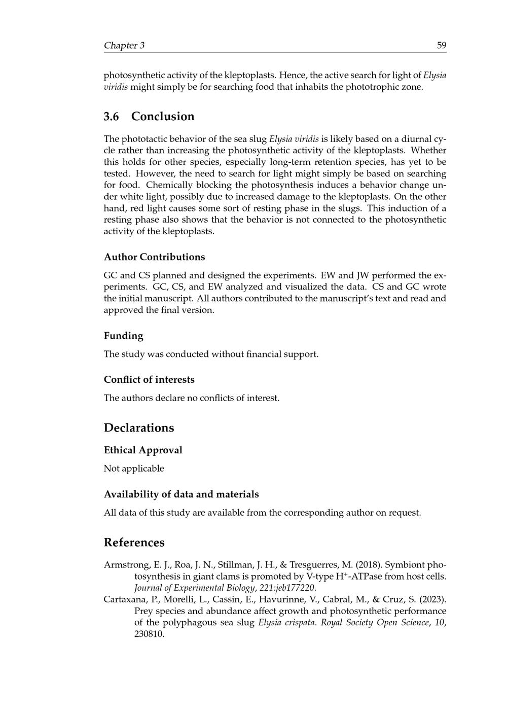 The Phototactic Behavior of the Kleptoplastic Sea Slug Elysia viridis (Montagu, 1804)[...]