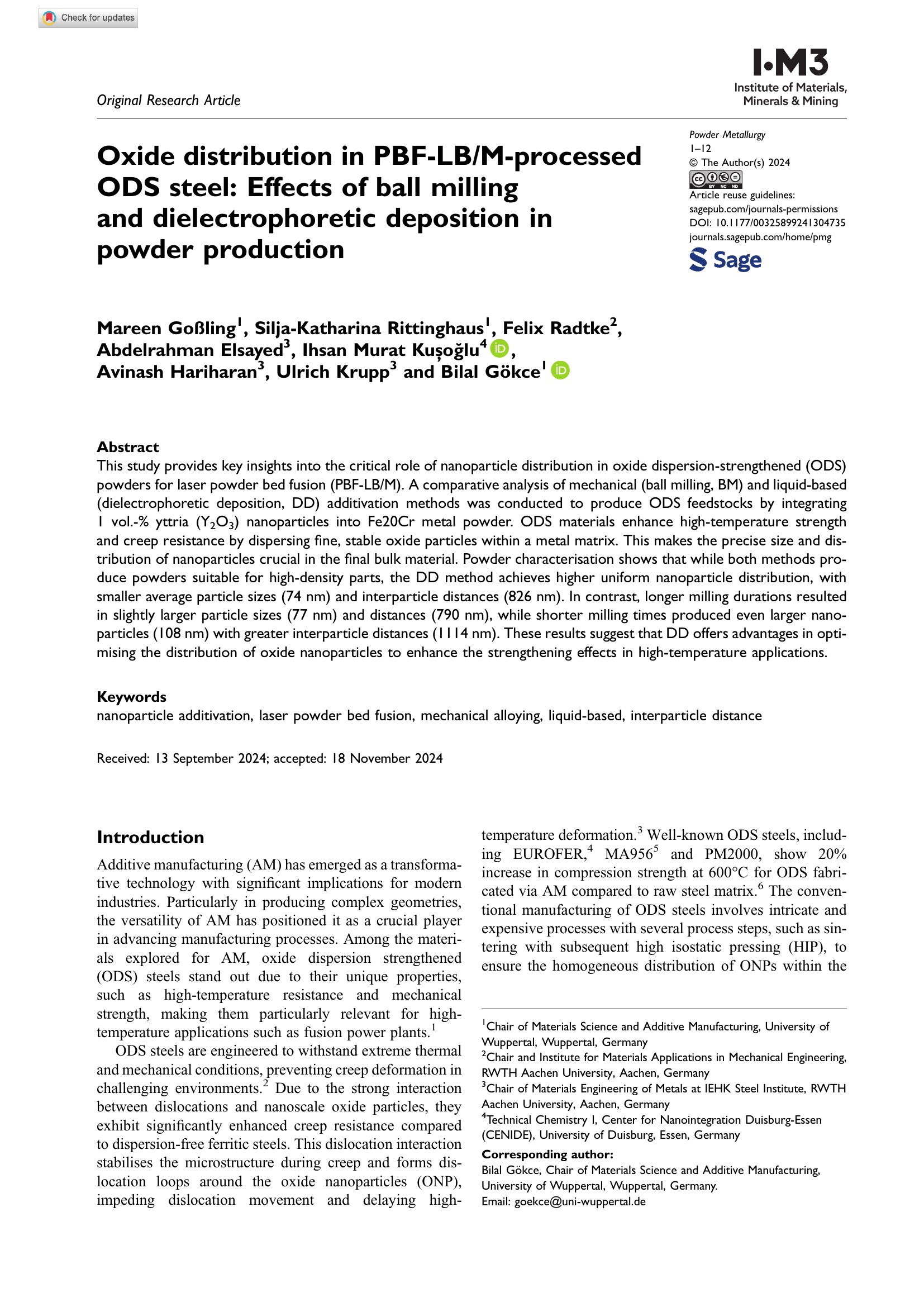Powder-based additive manufacturing of oxide dispersion-strengthened steels / submitted by: Mareen Goßling