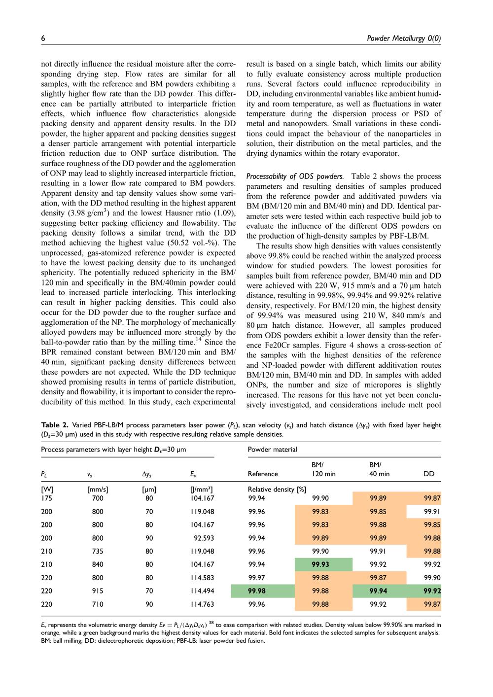 Processability of ODS powders