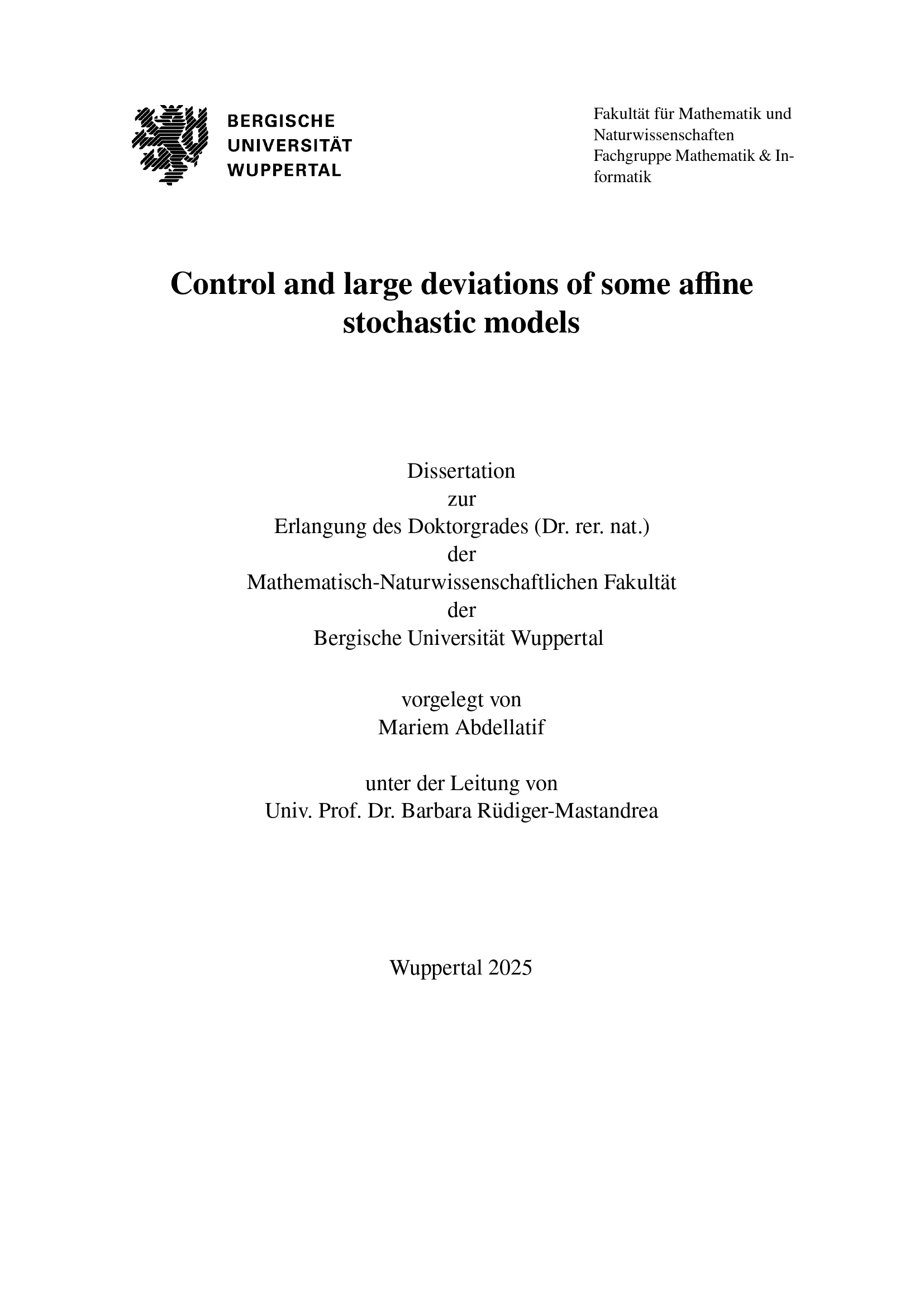 Control and large deviations of some affine stochastic models / vorgelegt von Mariem Abdellatif