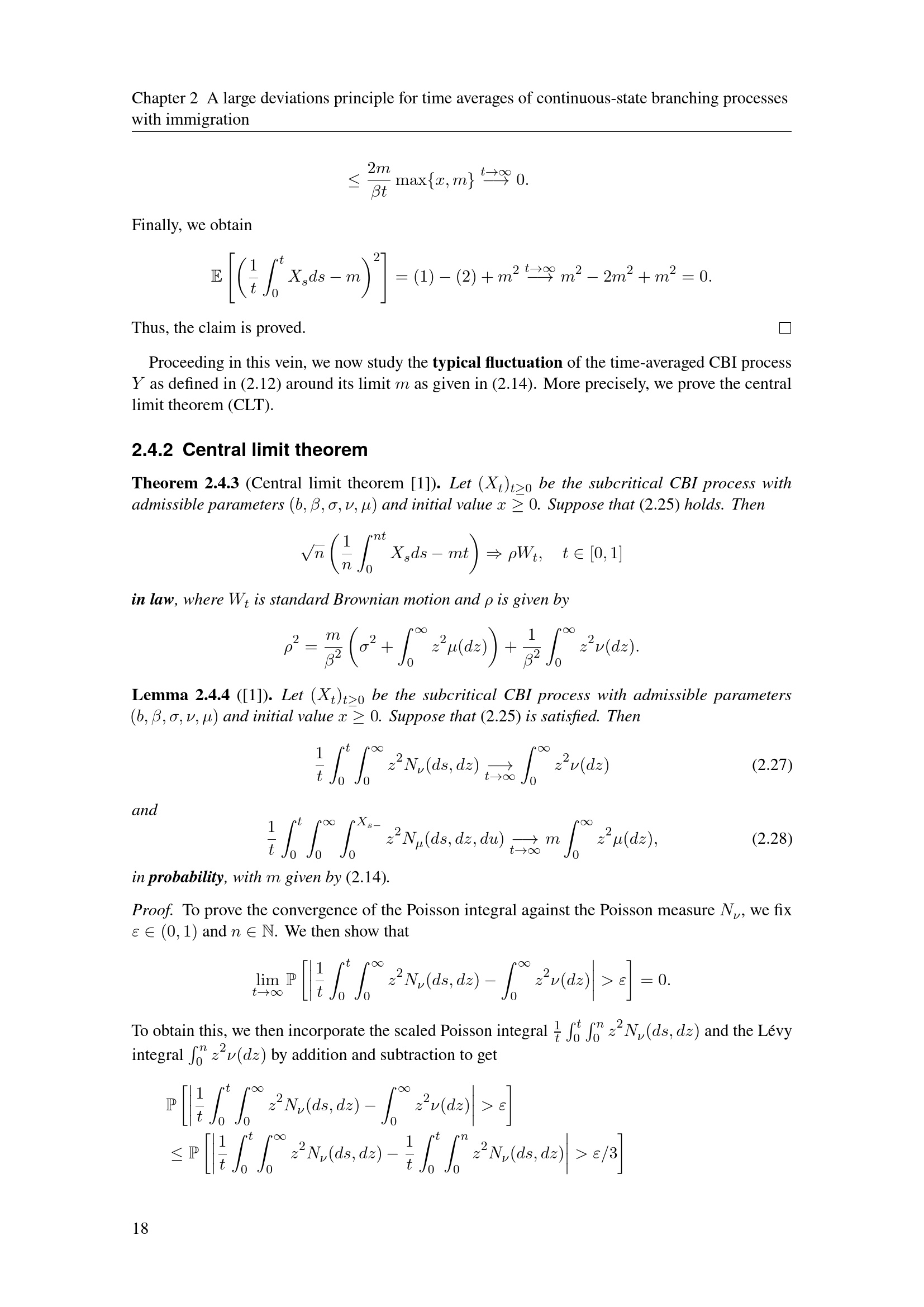 2.4 Long-term asymptotics of the time-averaged subcritical CBI-process