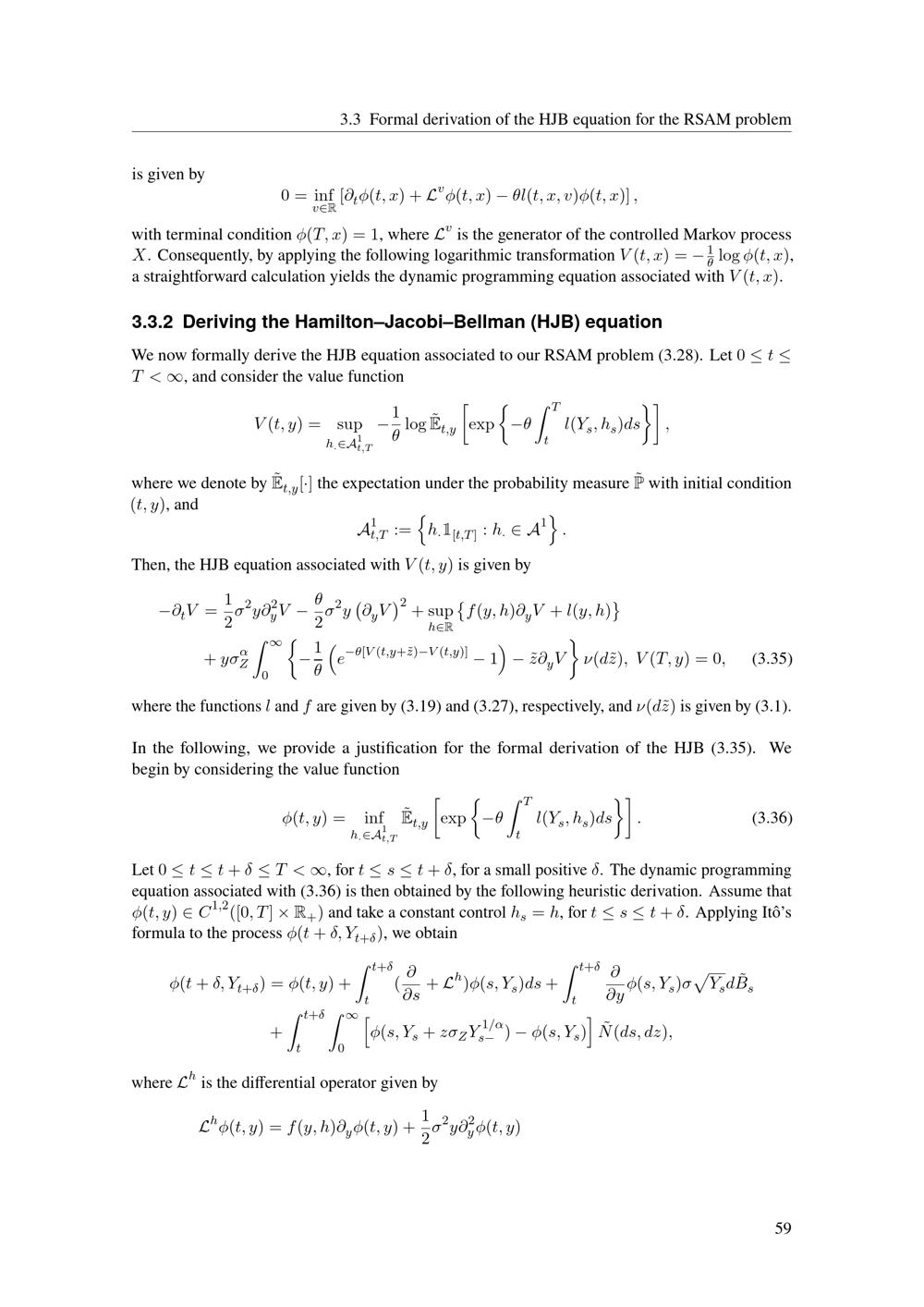 3.3 Formal derivation of the HJB equation for the RSAM problem
