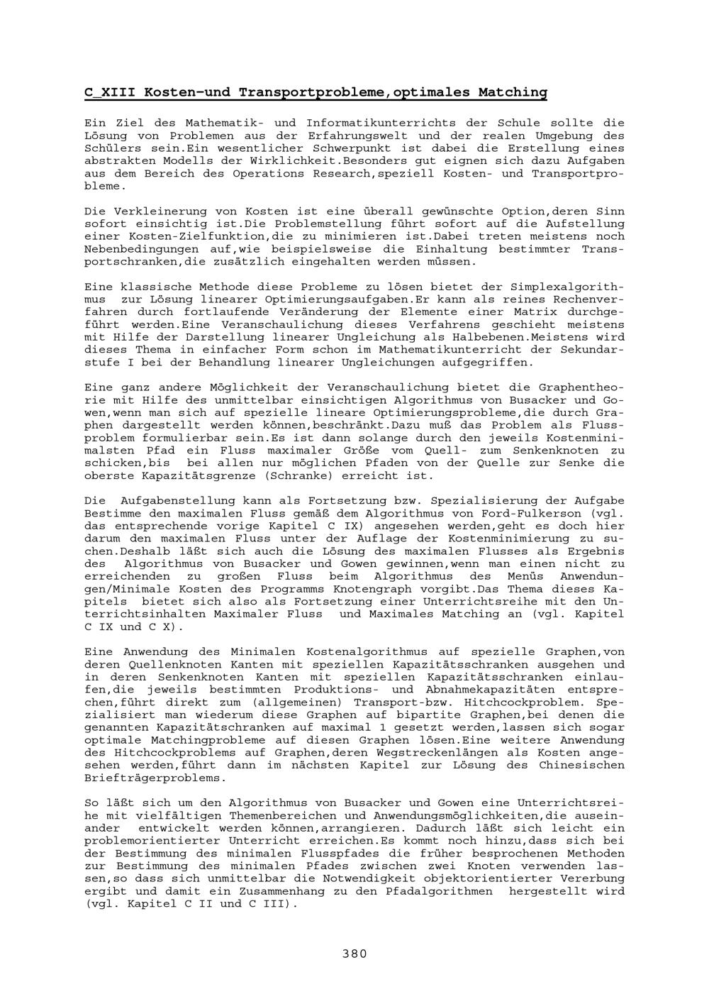 CXIII Kosten- und Transportprobleme,optimales Matching