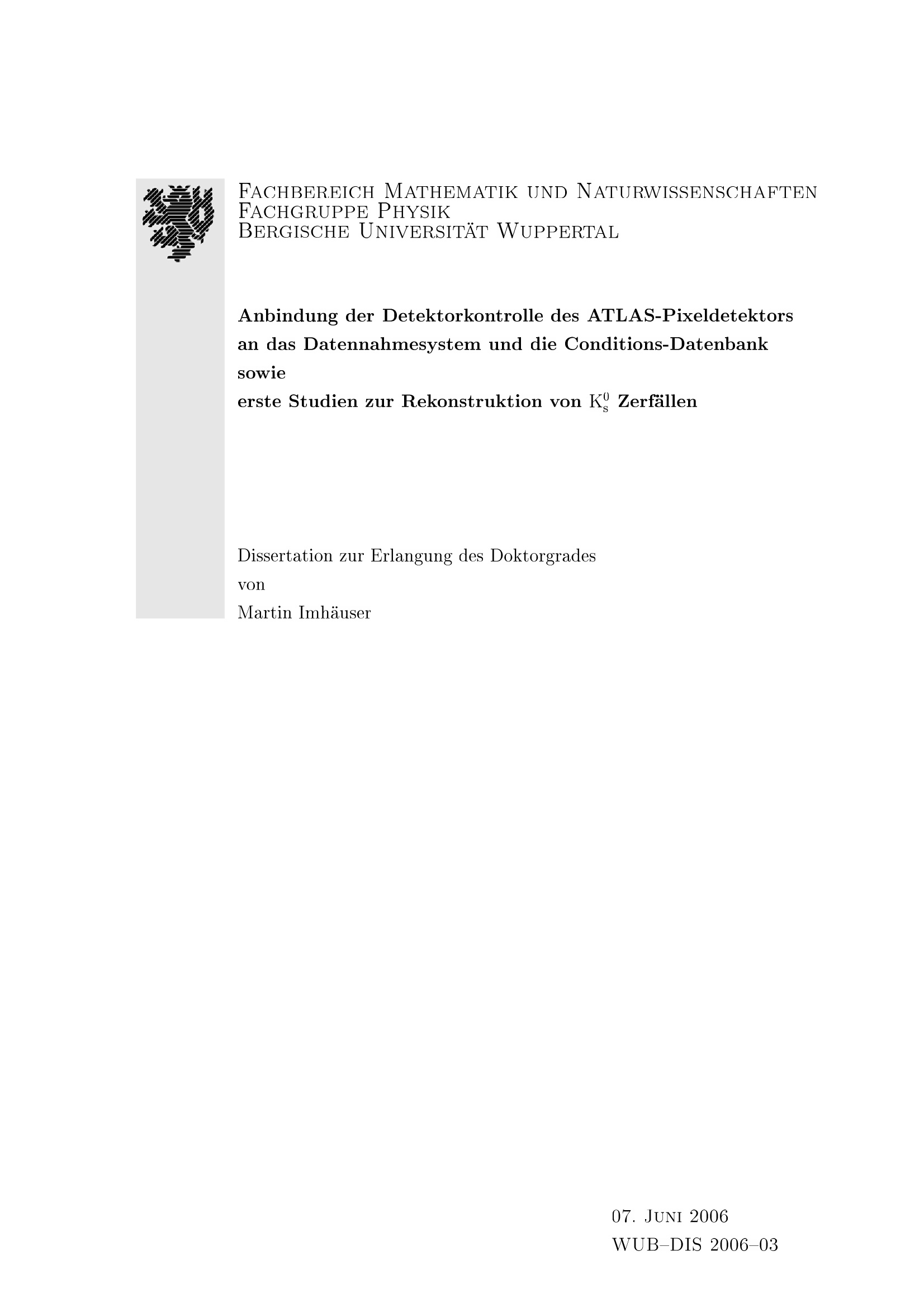 Anbindung der Detektorkontrolle des ATLAS-Pixeldetektors an das Datennahmesystem und die Conditions-Datenbank sowie erste Studien zur Rekonstruktion von K 0 s Zerfällen / von Martin Imhäuser