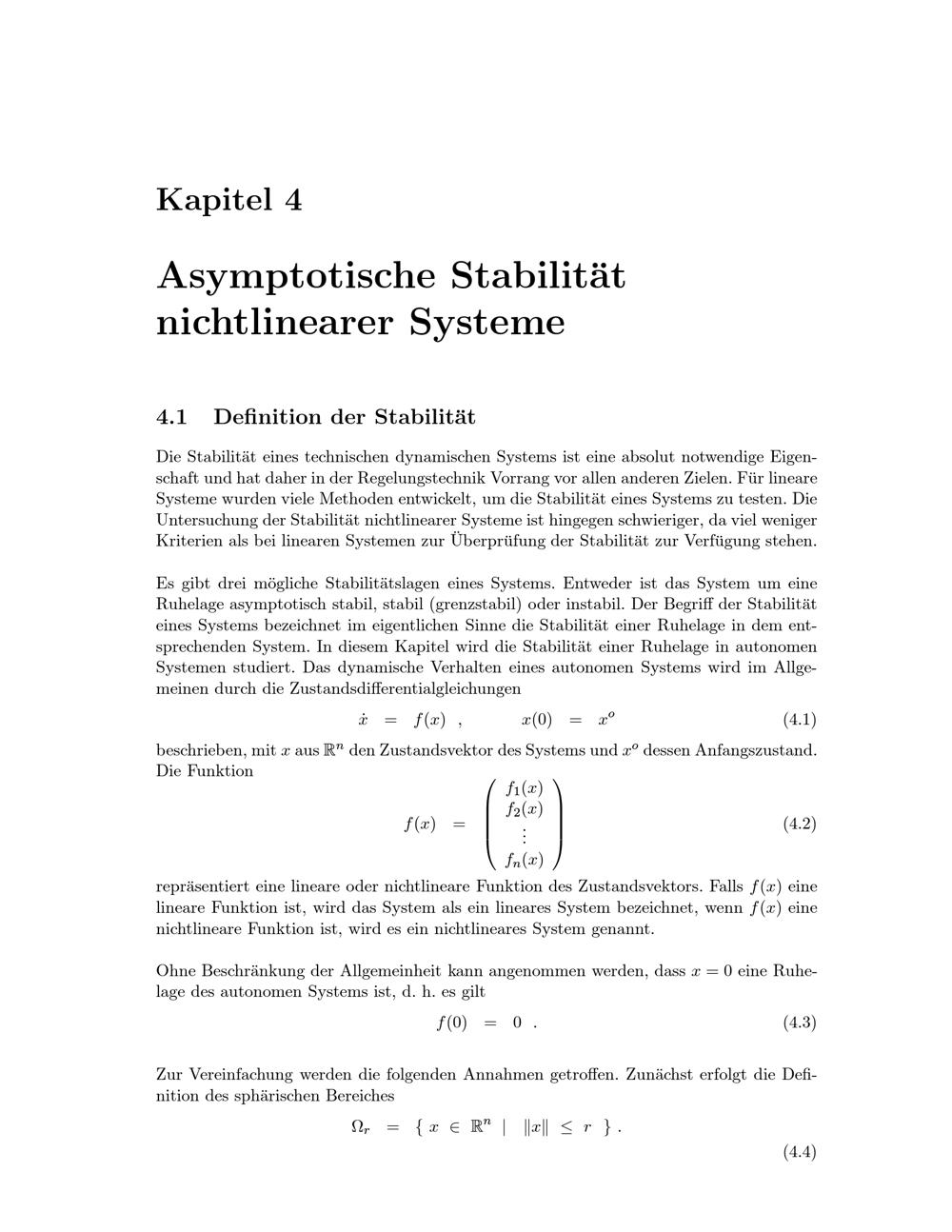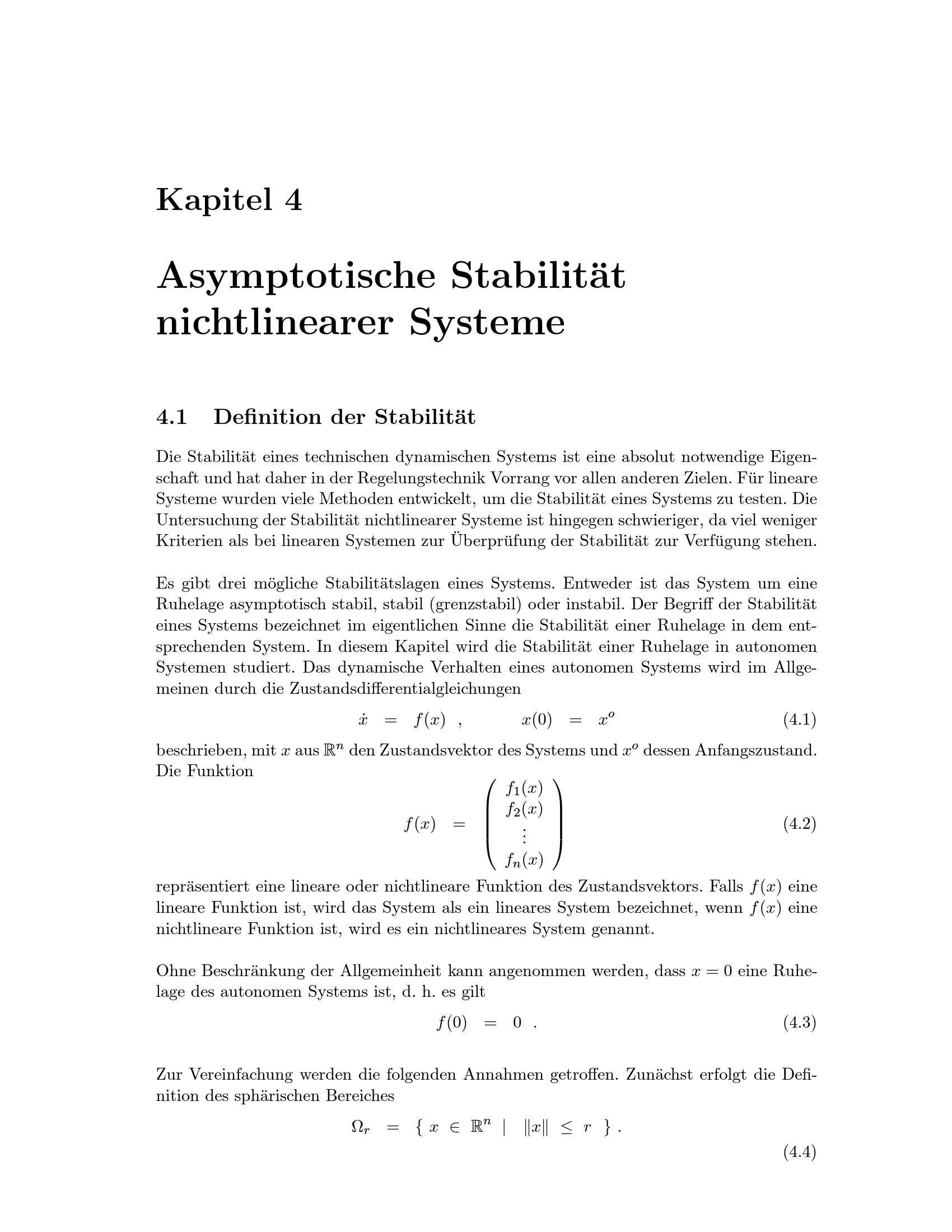 4 Asymptotische Stabilität nichtlinearer Systeme