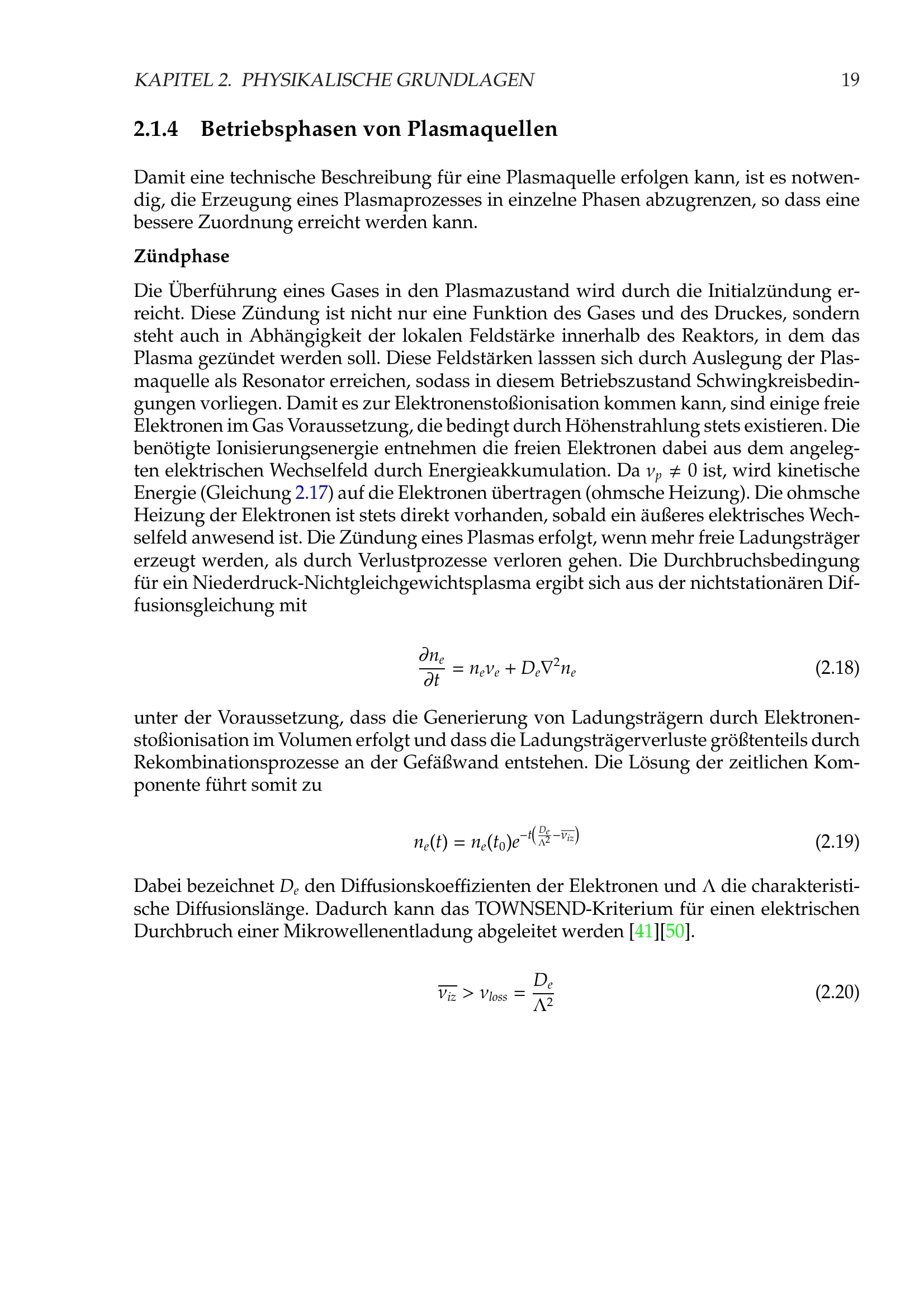 Betriebsphasen von Plasmaquellen