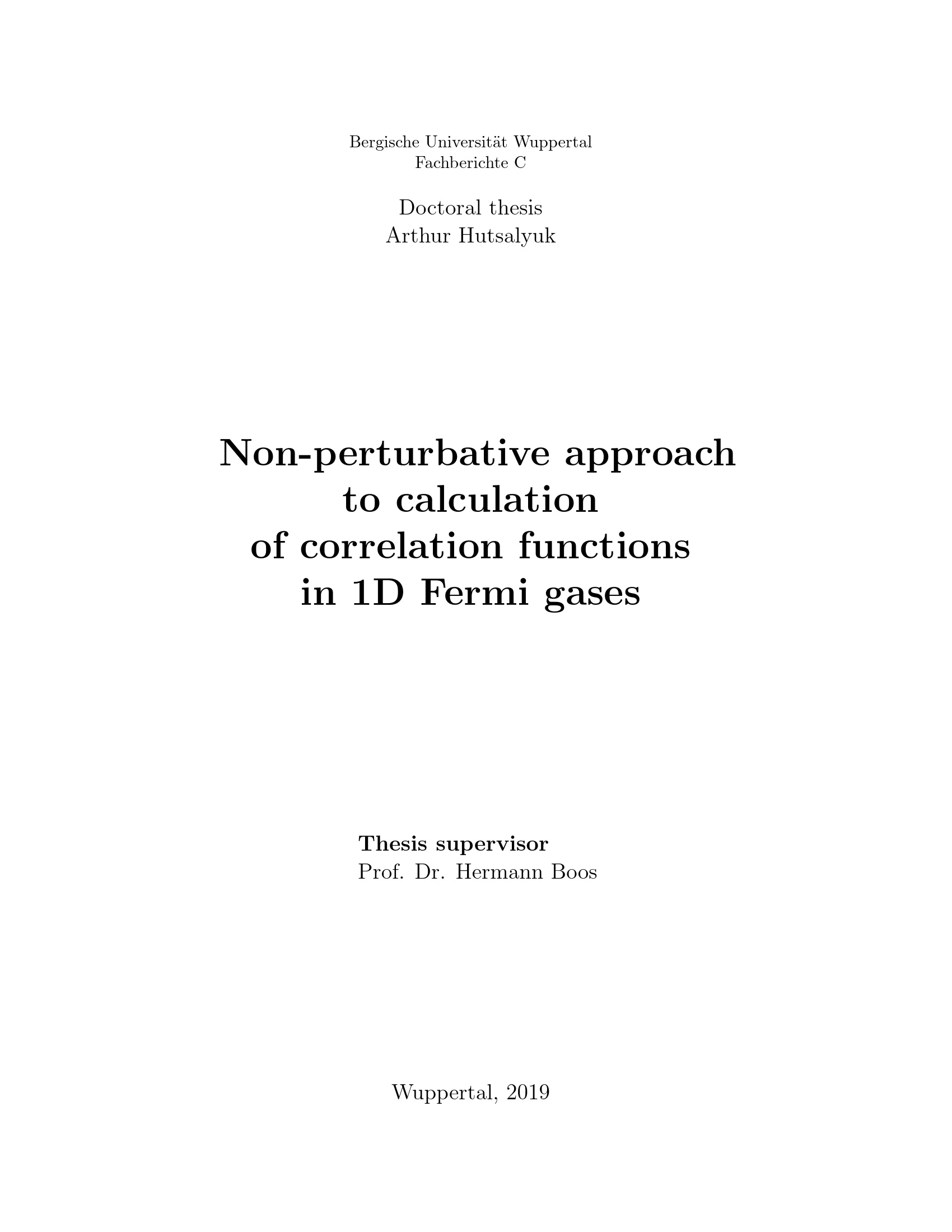 Non-perturbative approach to calculation of correlation functions in 1D Fermi gases / Arthur Hutsalyuk