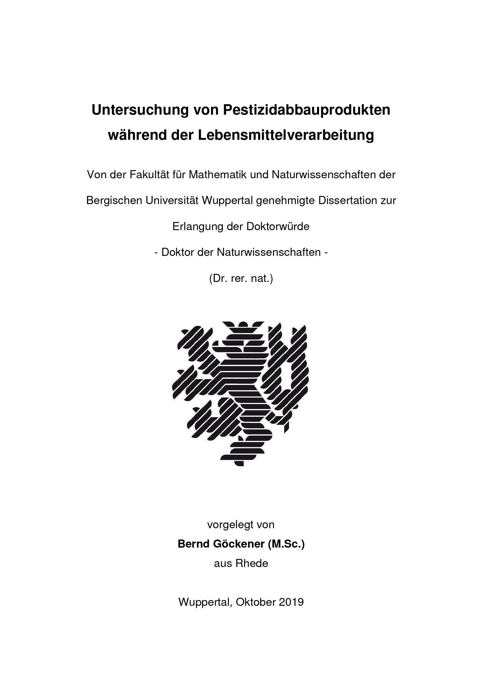 Untersuchung von Pestizidabbauprodukten während der Lebensmittelverarbeitung / vorgelegt von Bernd Göckener (M.Sc.) aus Rhede