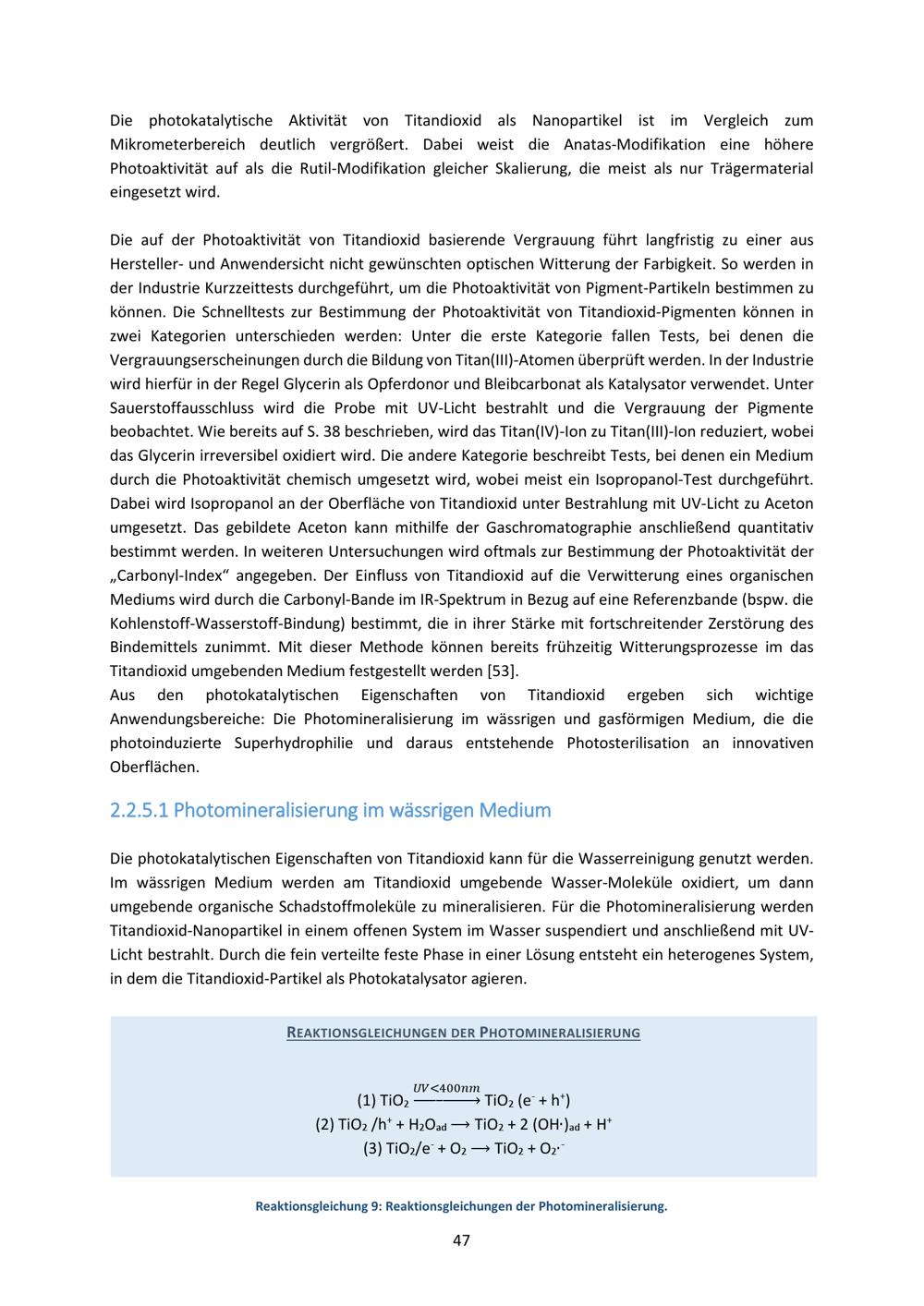 2.2.5.1 Photomineralisierung im wässrigen Medium