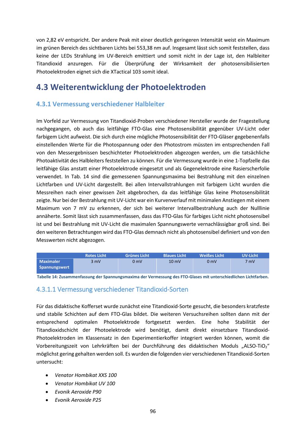 4.3.1.1 Vermessung verschiedener Titandioxid-Sorten