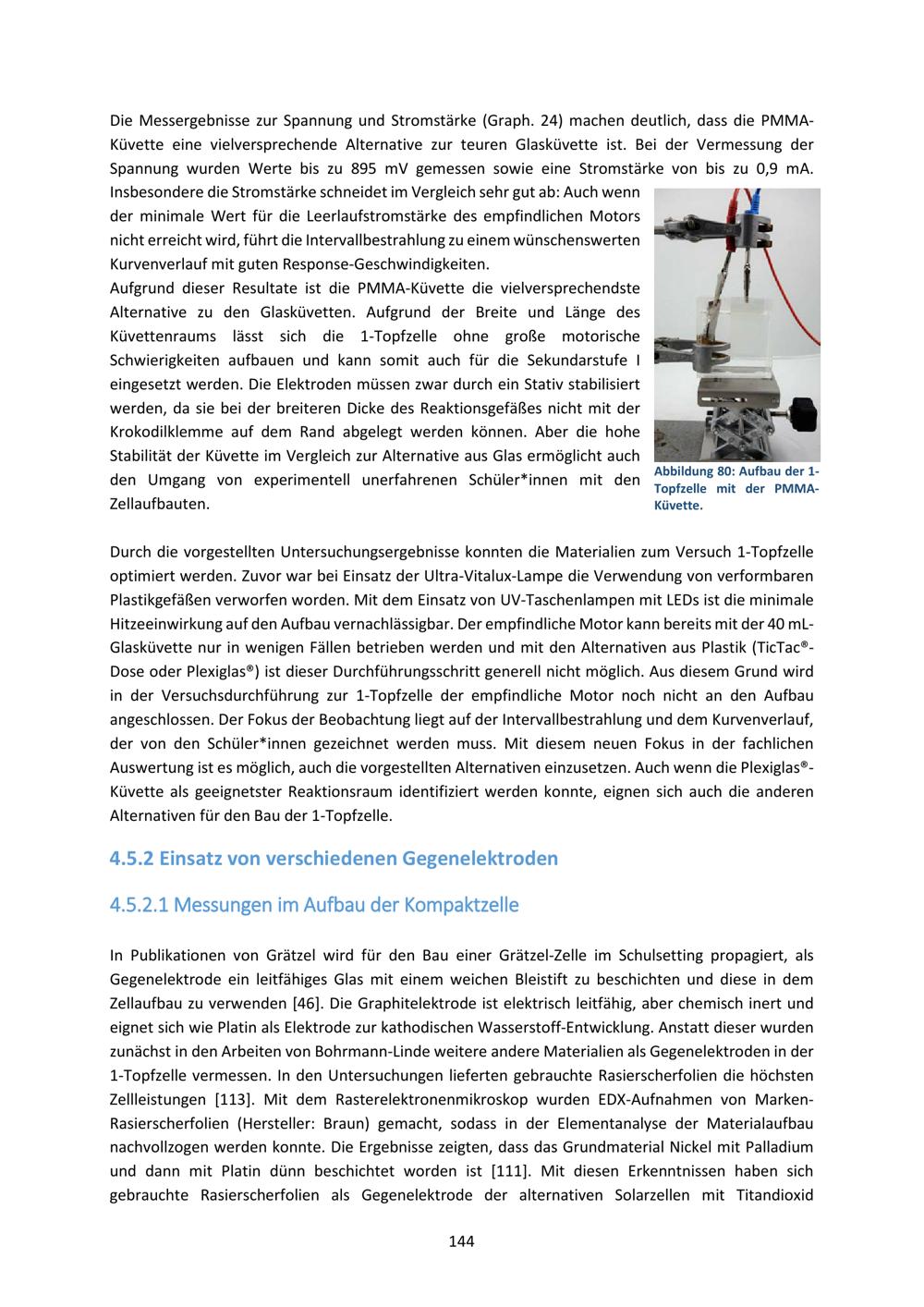 4.5 Untersuchungen weiterer Zellkomponenten in 1-Topfzelle und Kompaktzelle