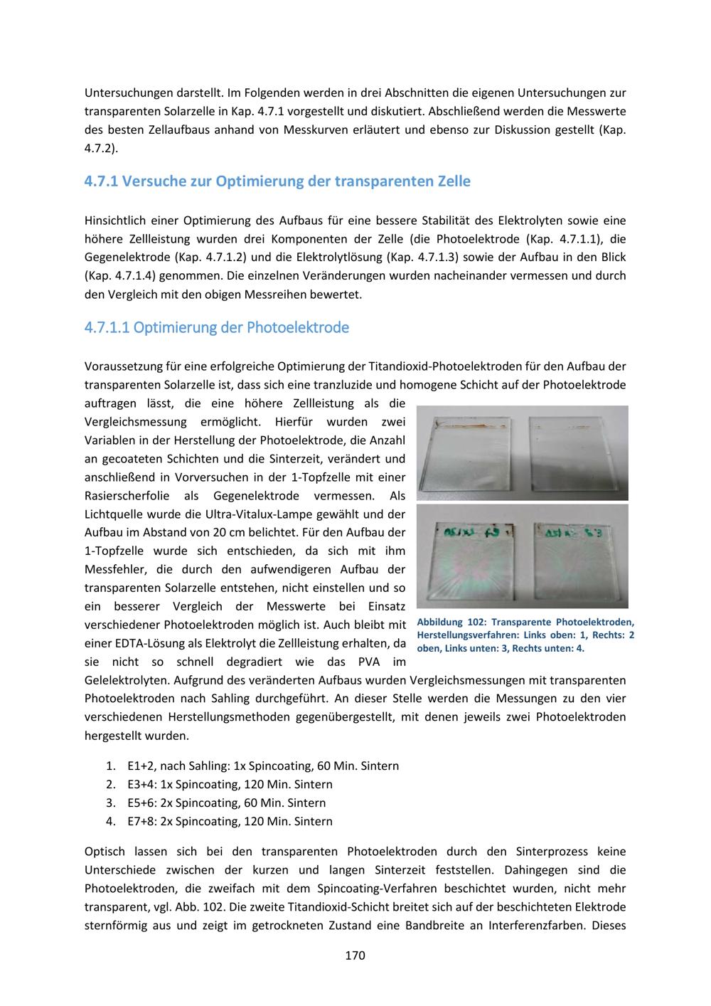 4.7.1 Versuche zur Optimierung der transparenten Zelle