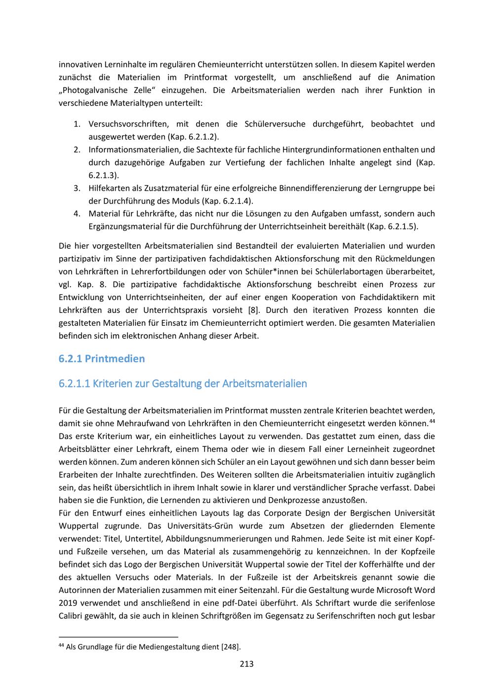 6.2.1.1 Kriterien zur Gestaltung der Arbeitsmaterialien