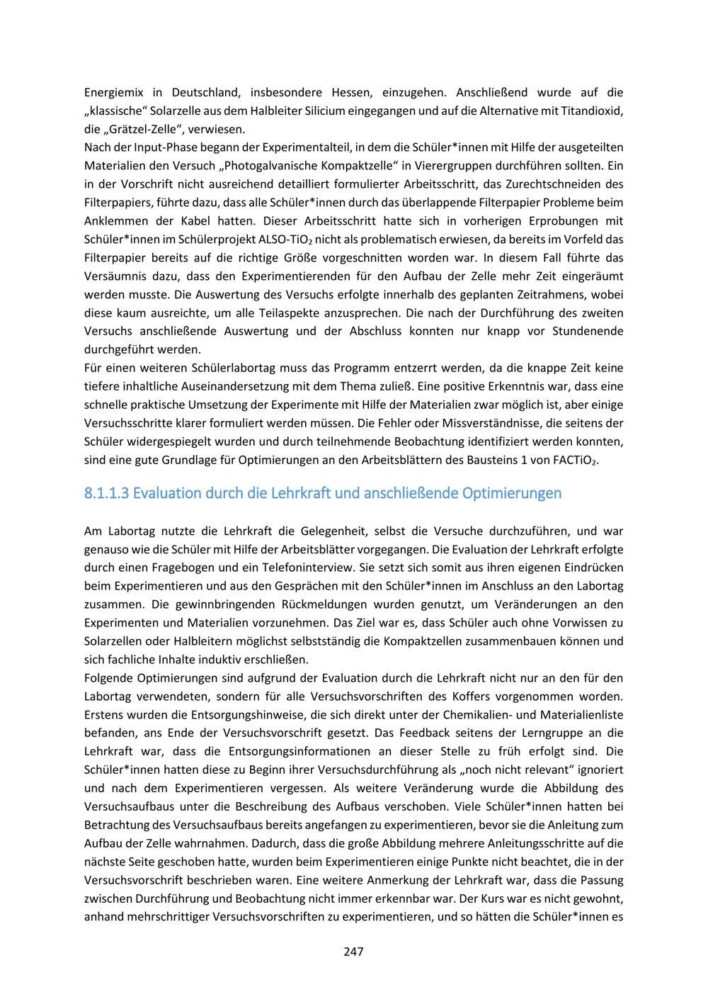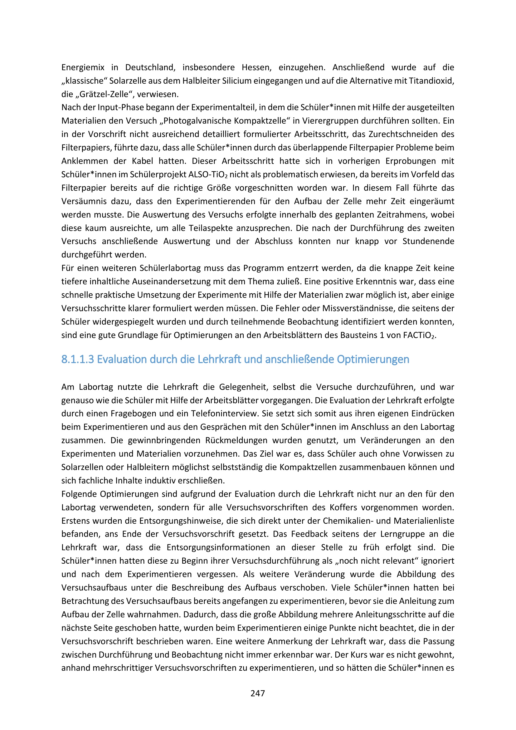 8.1.1.3 Evaluation durch die Lehrkraft und anschließende Optimierungen