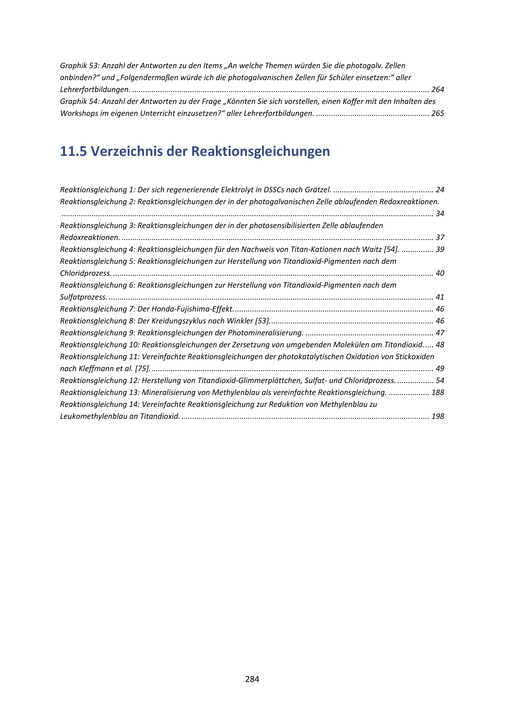 11.5 Verzeichnis der Reaktionsgleichungen