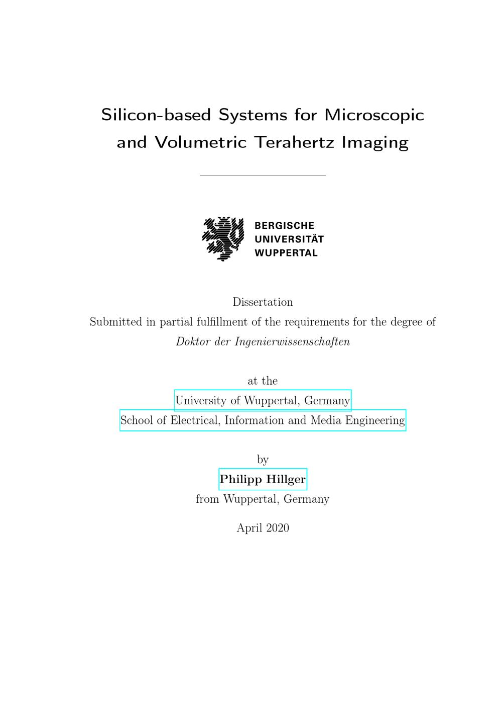 Silicon-based systems for microscopic and volumetric terahertz imaging / by Philipp Hillger from Wuppertal, Germany