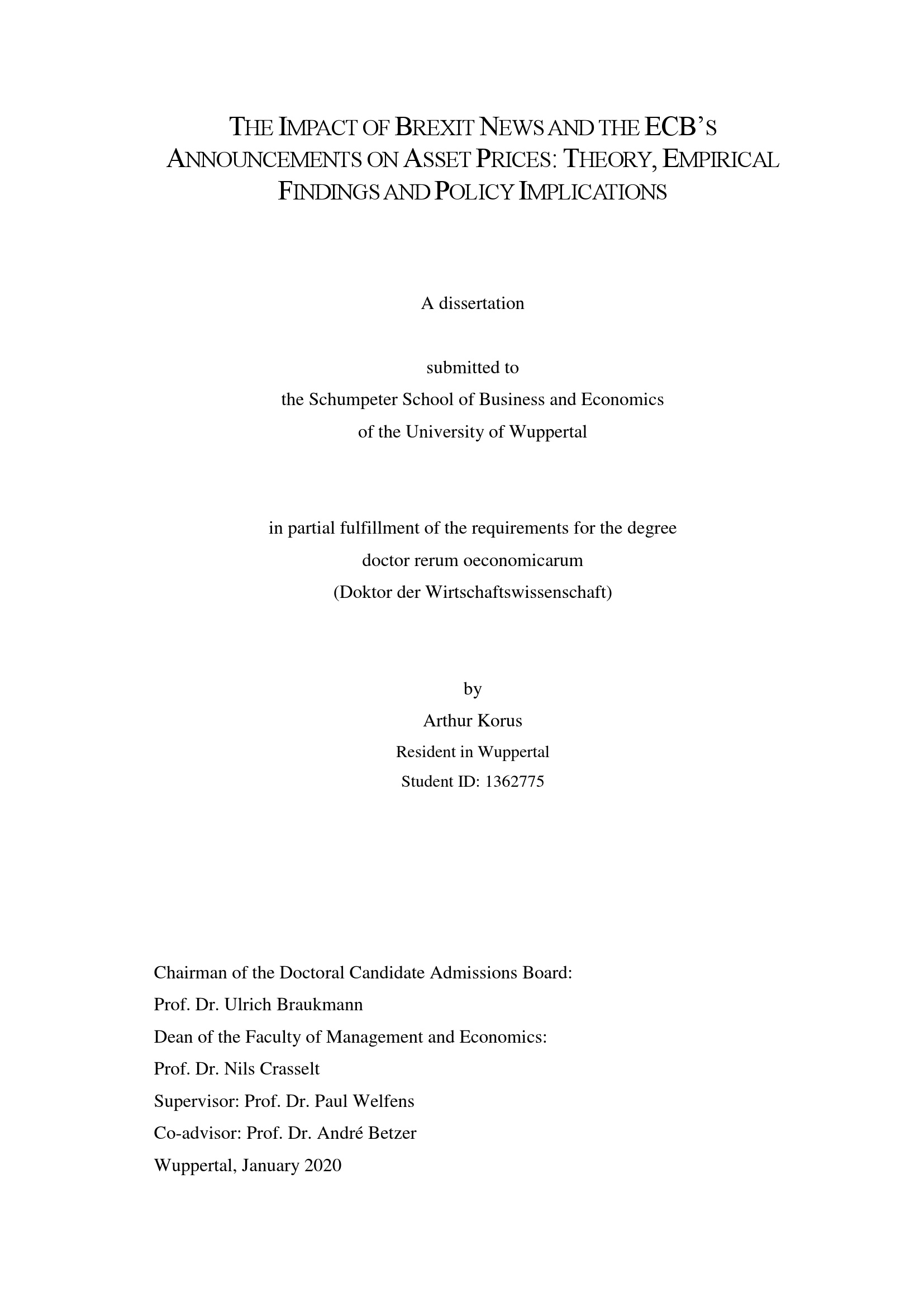 The impact of Brexit news and the ECB's announcements on asset prices : theory, empirical findings and policy implications / by Arthur Korus, resident in Wuppertal