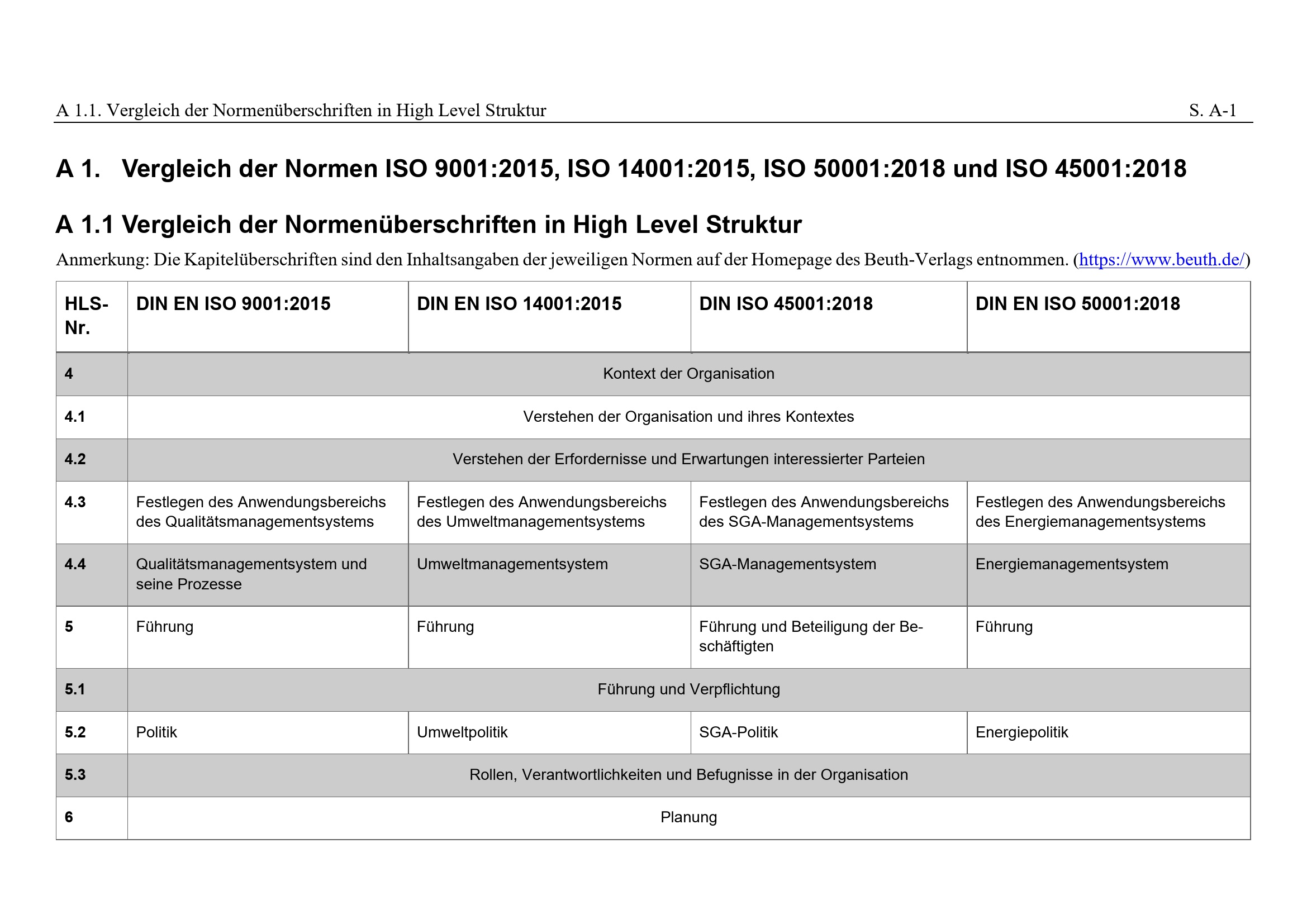 A 1. Vergleich der Normen ISO 9001:2015, ISO 14001:2015, ISO 50001:2018 und ISO [...]