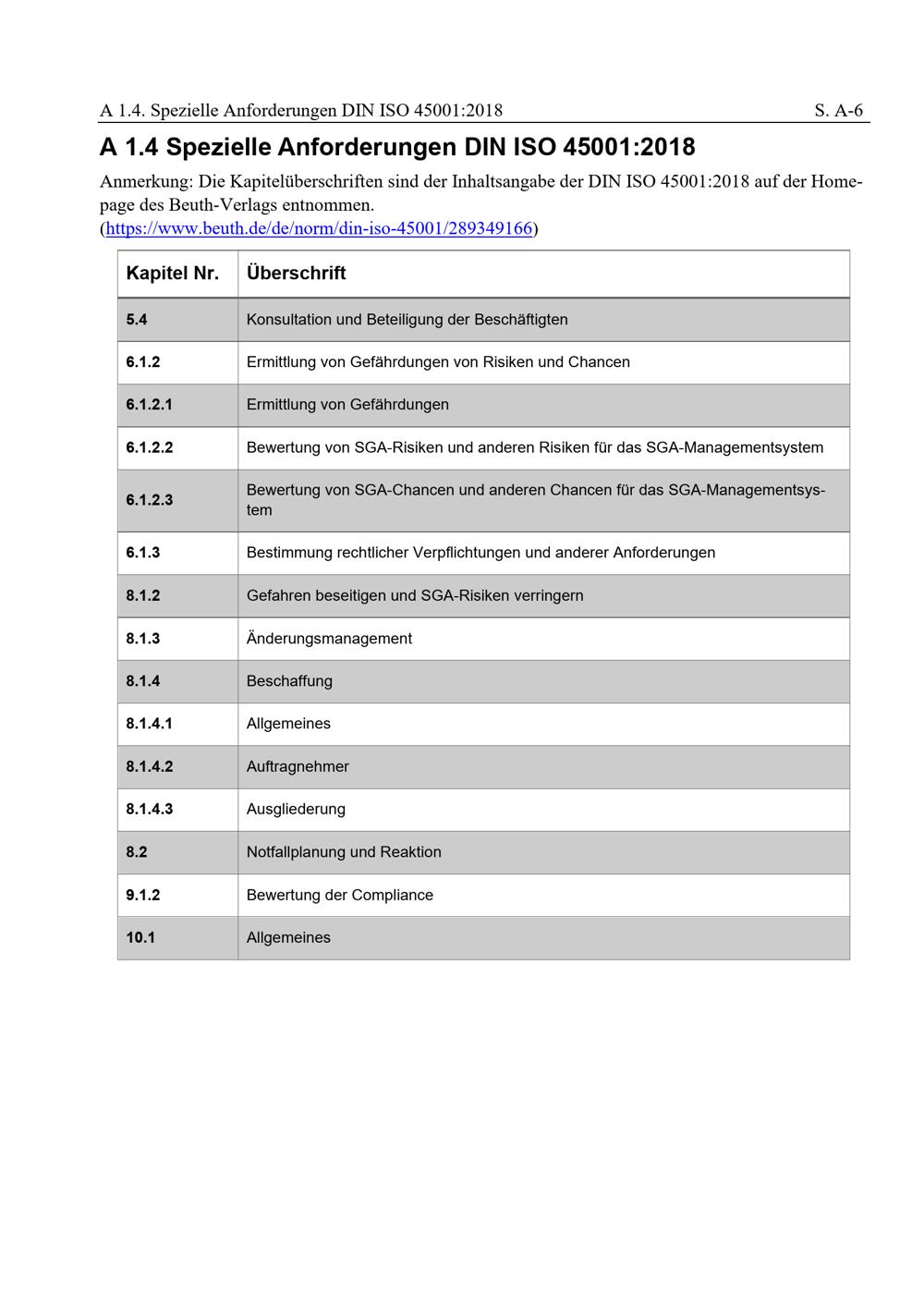A 1.4 Spezielle Anforderungen DIN ISO 45001:2018