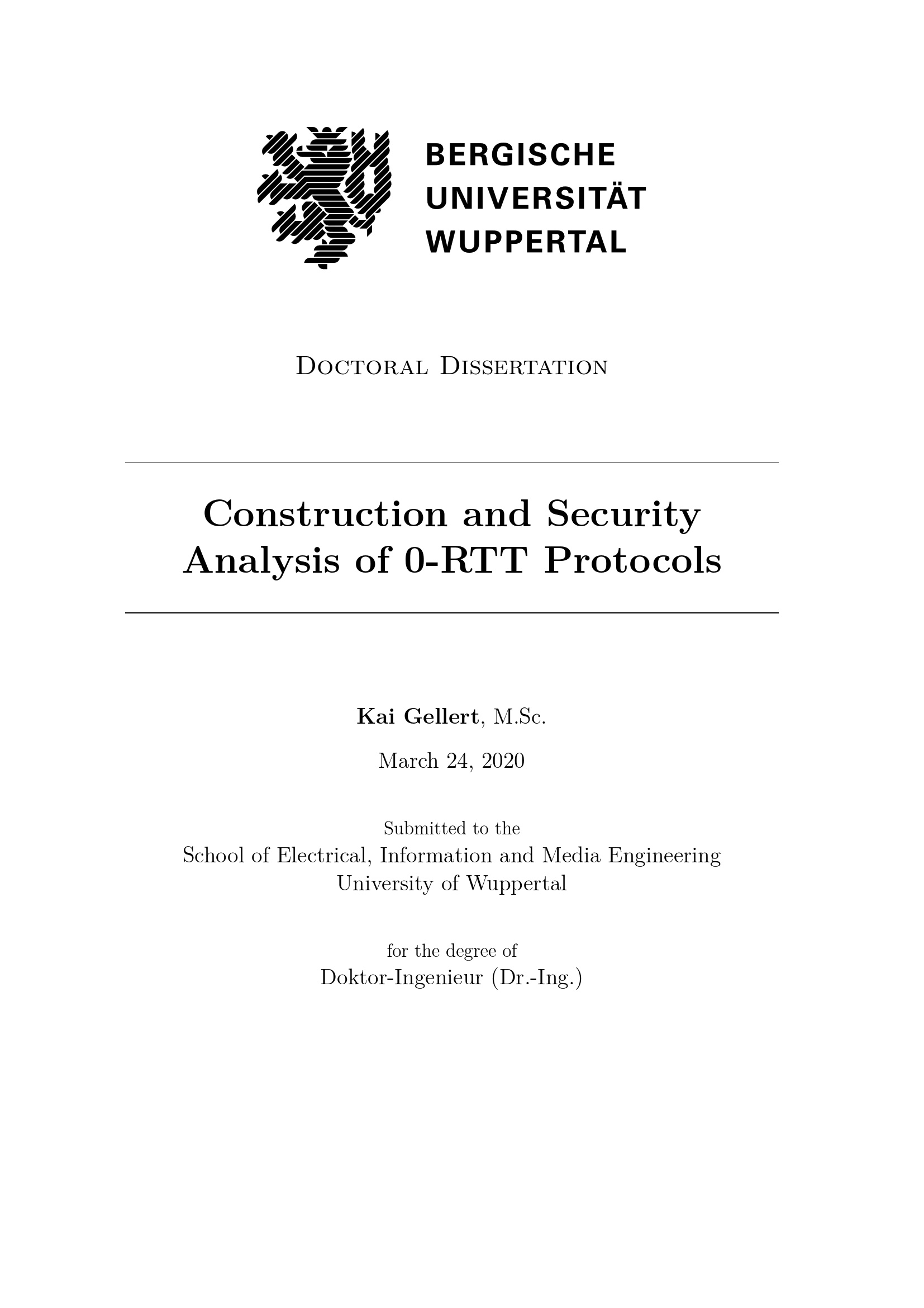 Construction and security analysis of 0-RTT Protocols / Kai Gellert, M. Sc.