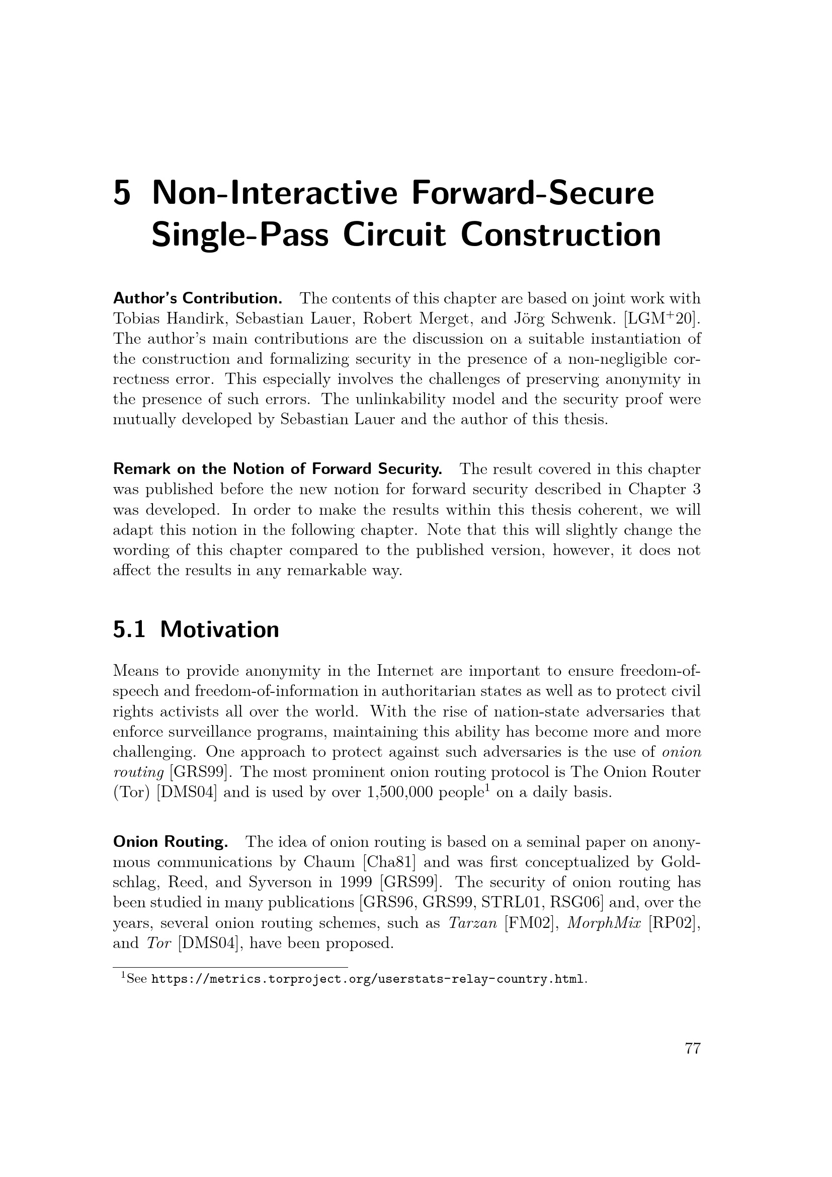 Non-Interactive Forward-Secure Single-Pass Circuit Construction