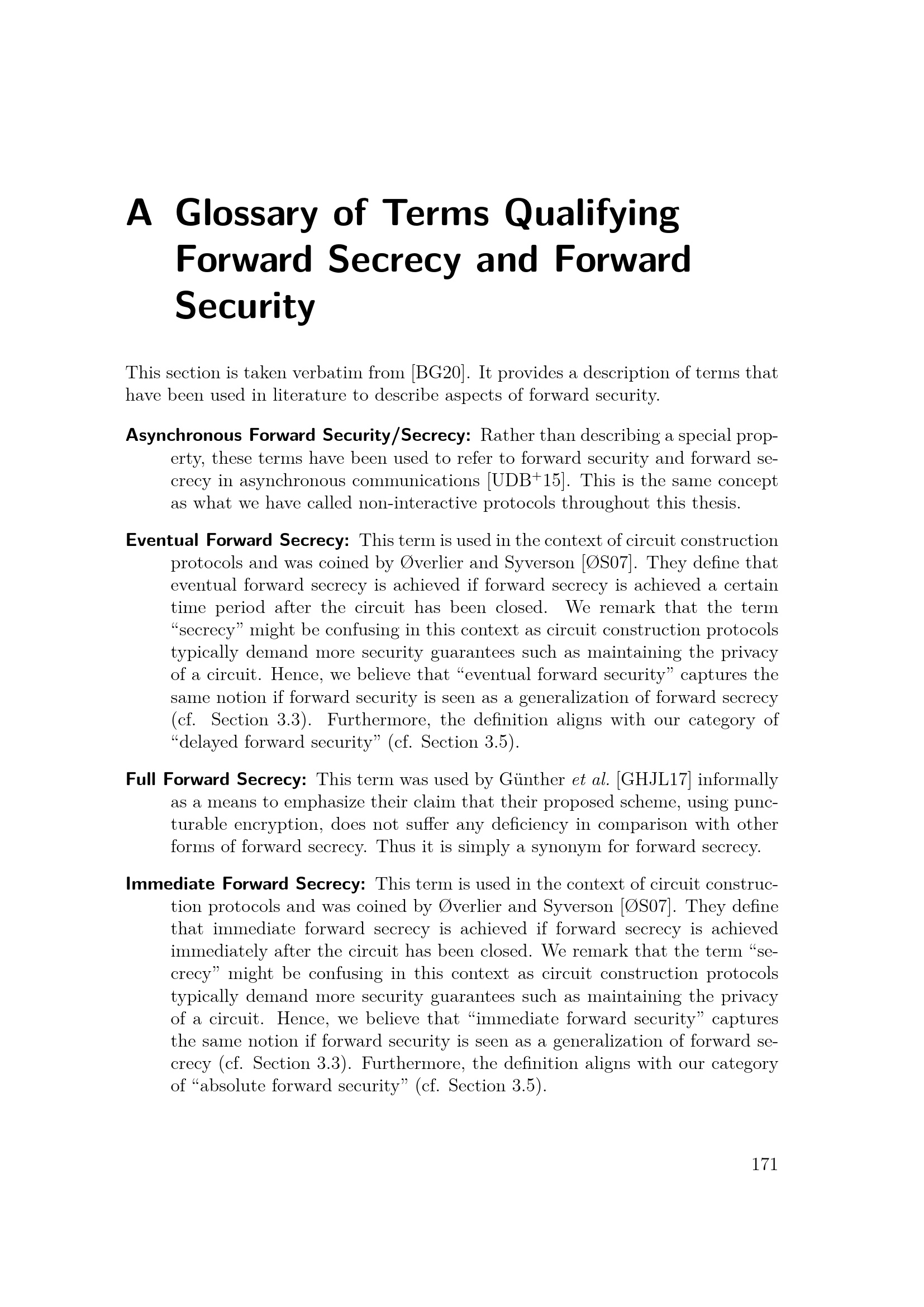 Glossary of Terms Qualifying Forward Secrecy and Forward Security