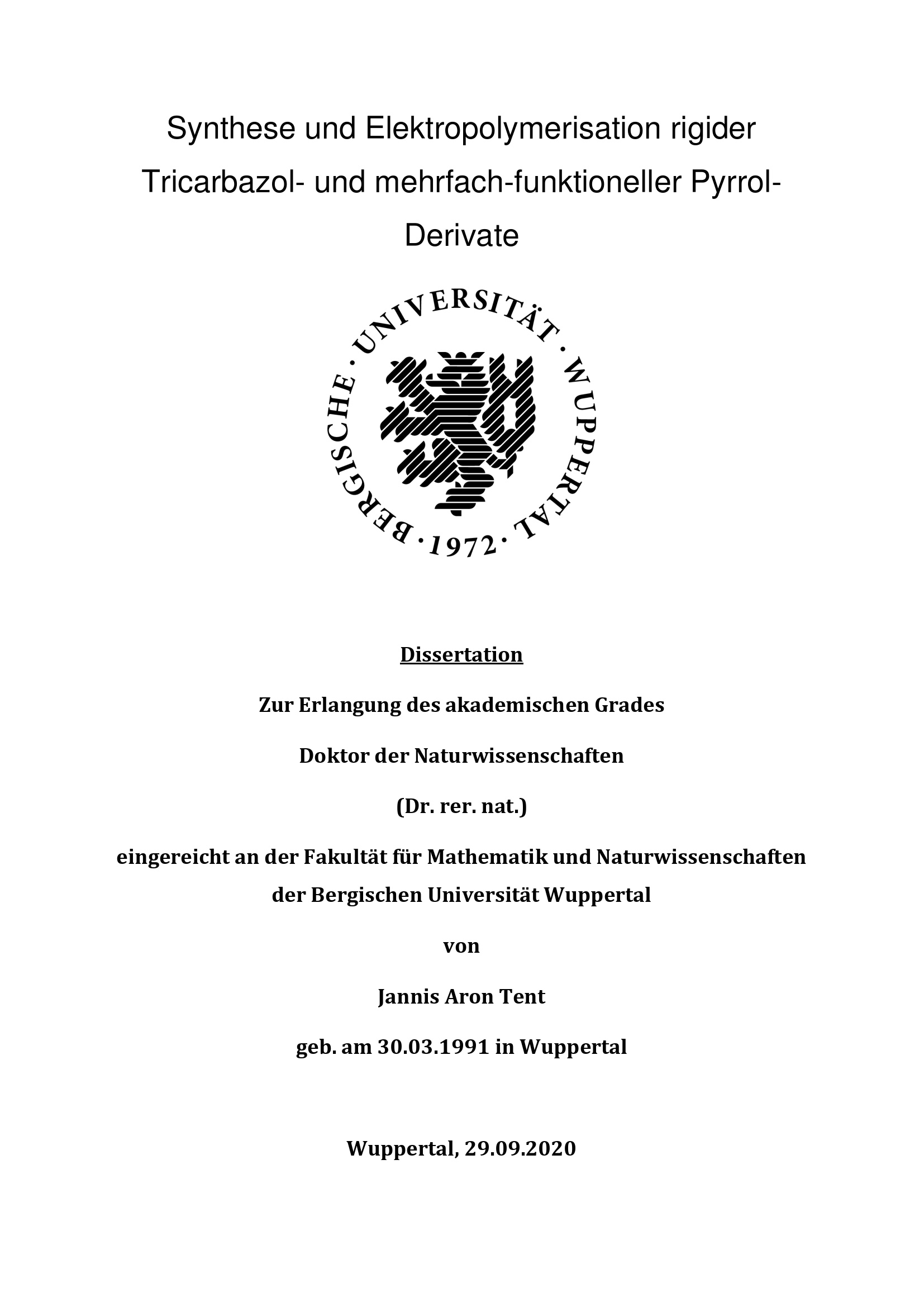Synthese und Elektropolymerisation rigider Tricarbazol- und mehrfach-funktioneller Pyrrol-Derivate / von Jannis Aron Tent