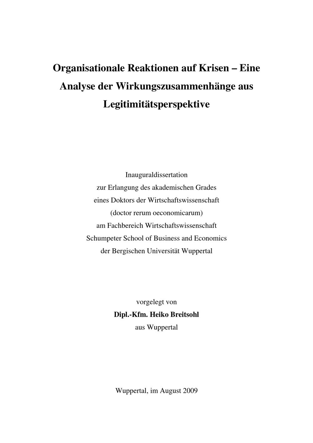 Organisationale Reaktionen auf Krisen : eine Analyse der Wirkungszusammenhänge aus Legitimitätsperspektive / vorgelegt von Heiko Breitsohl