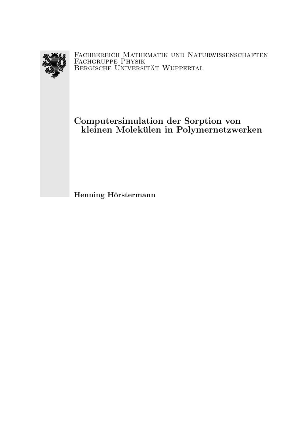 Computersimulation der Sorption von kleinen Molekülen in Polymernetzwerken / Henning Hörstermann