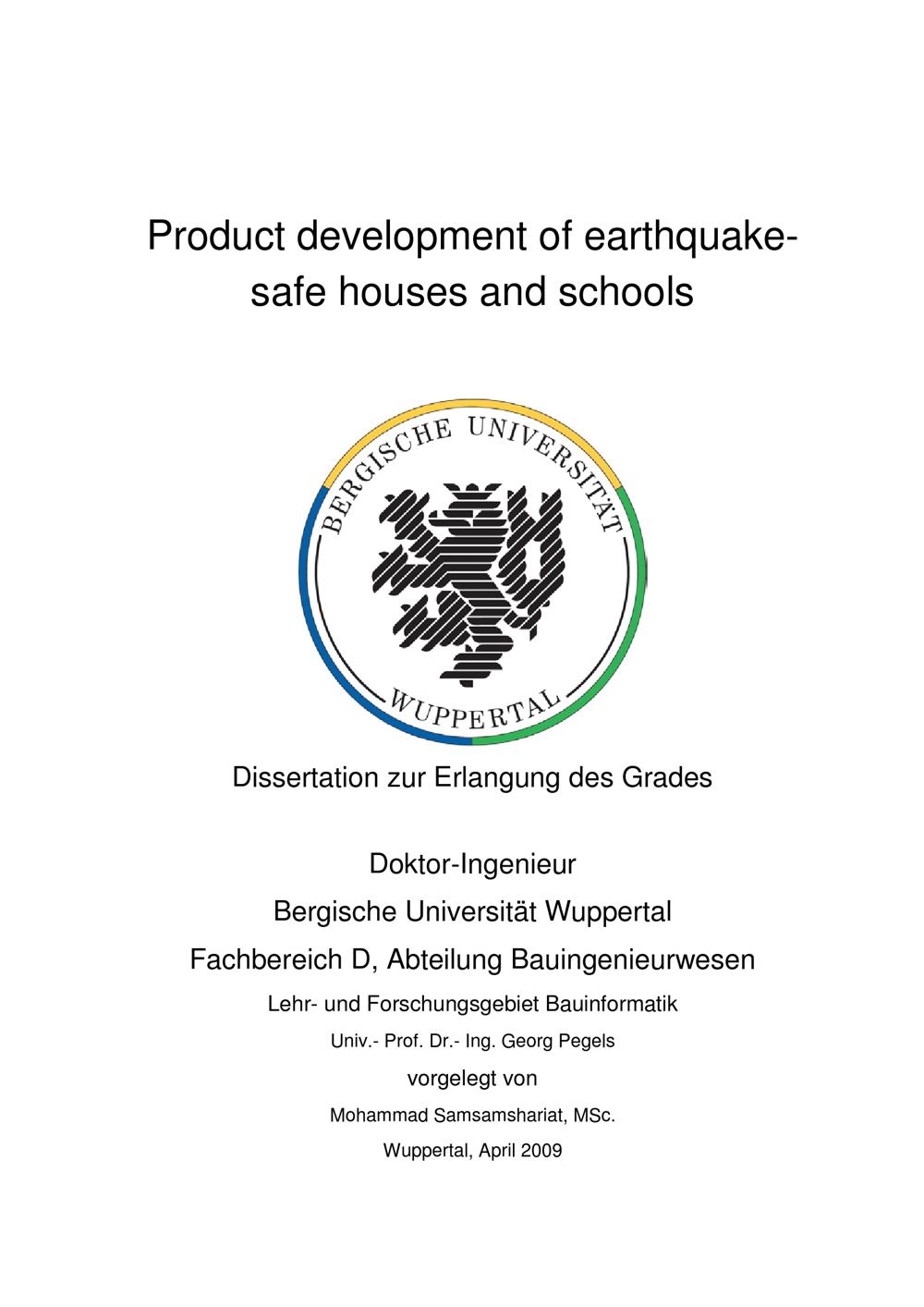 Product development of earthquake safe houses and schools / vorgelegt von Mohammad Samsamshariat