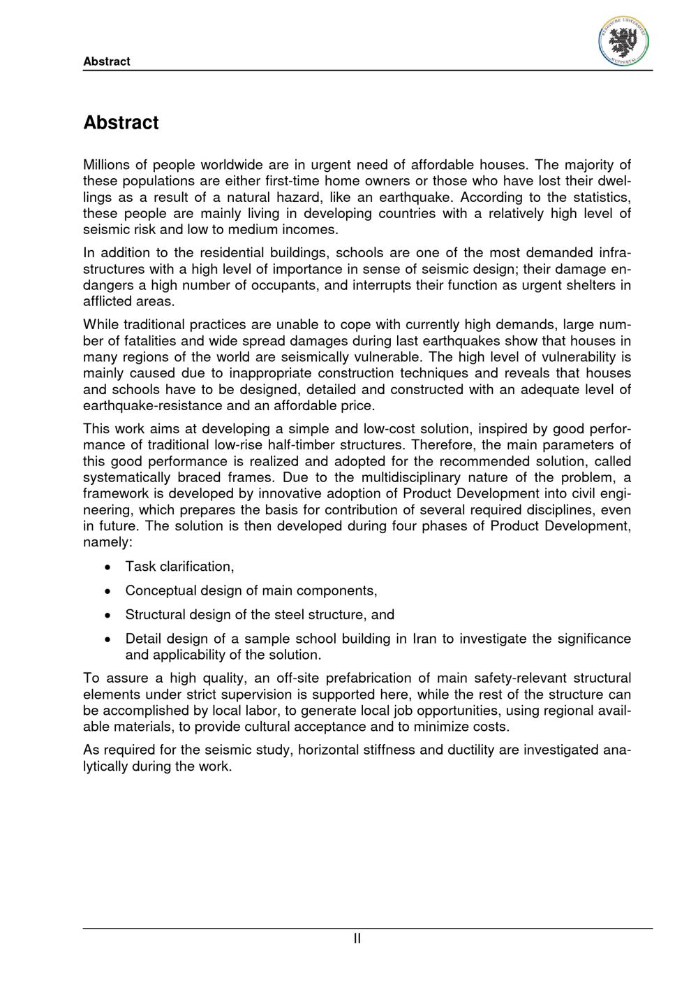 Product development of earthquake safe houses and schools / vorgelegt von Mohammad Samsamshariat