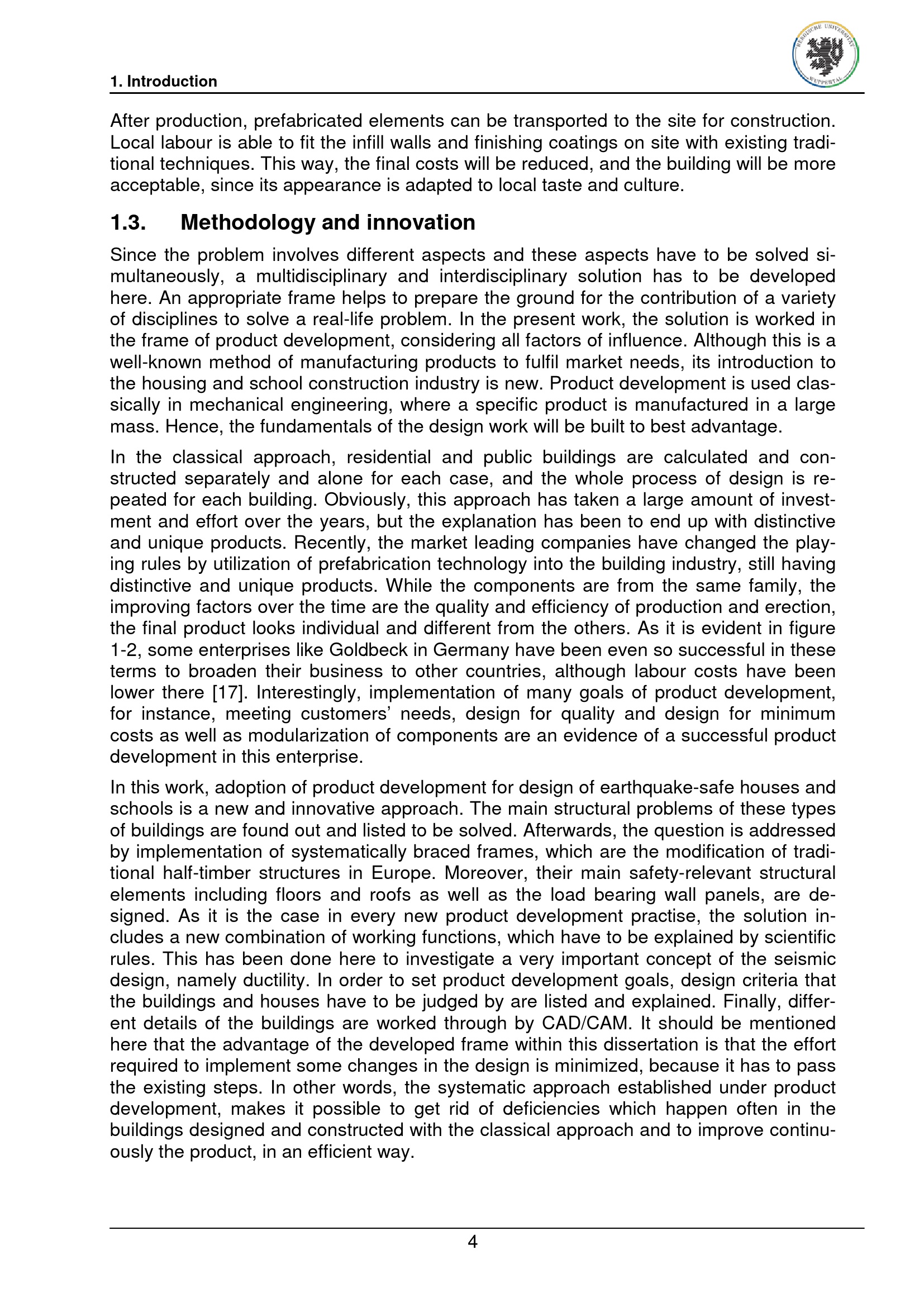 Product development of earthquake safe houses and schools / vorgelegt von Mohammad Samsamshariat