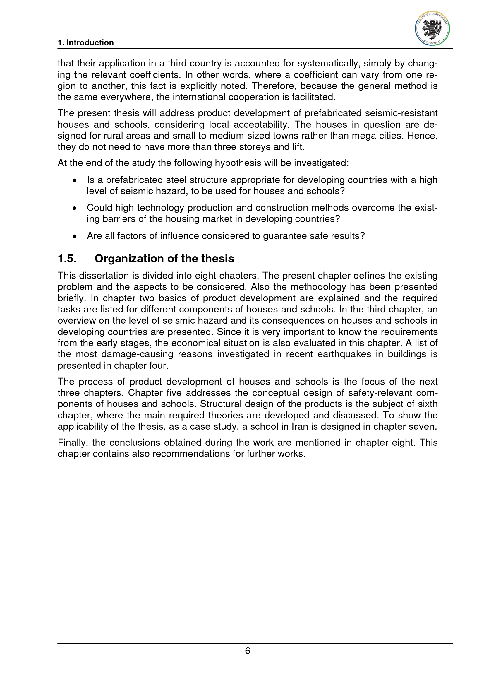 Product development of earthquake safe houses and schools / vorgelegt von Mohammad Samsamshariat