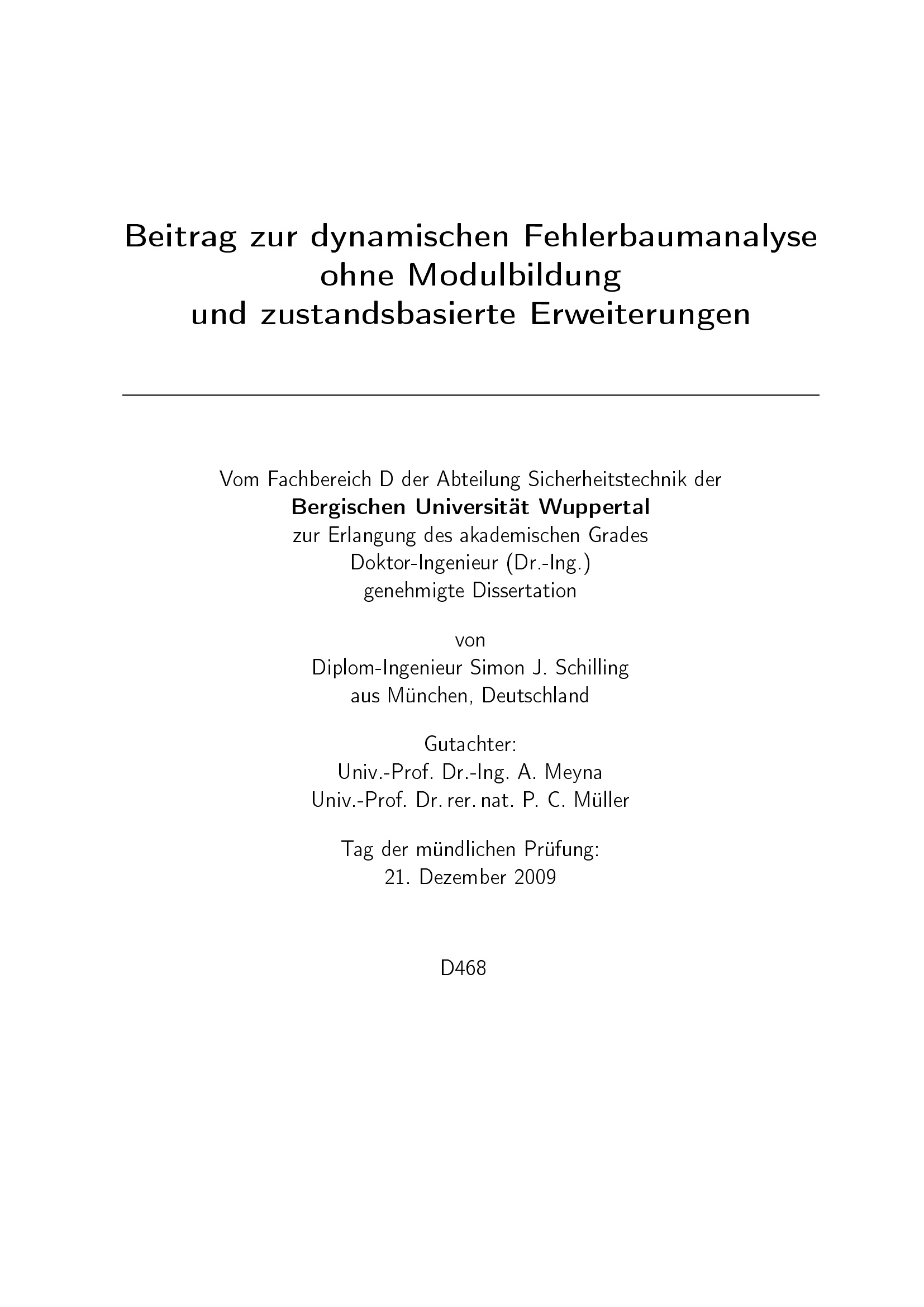 Beitrag zur dynamischen Fehlerbaumanalyse ohne Modulbildung und zustandsbasierte[...]