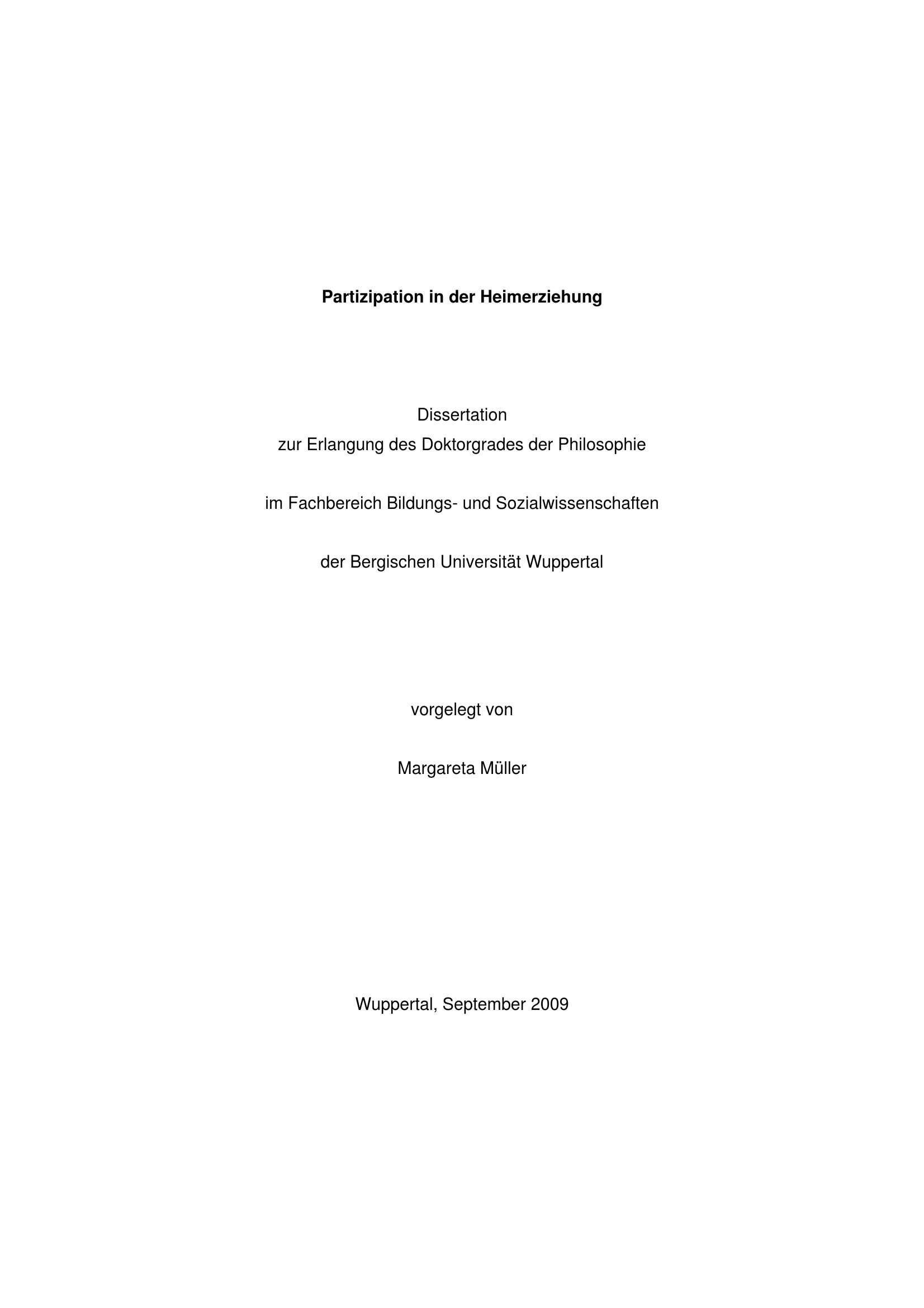 Partizipation in der Heimerziehung / vorgelegt von Margareta Müller