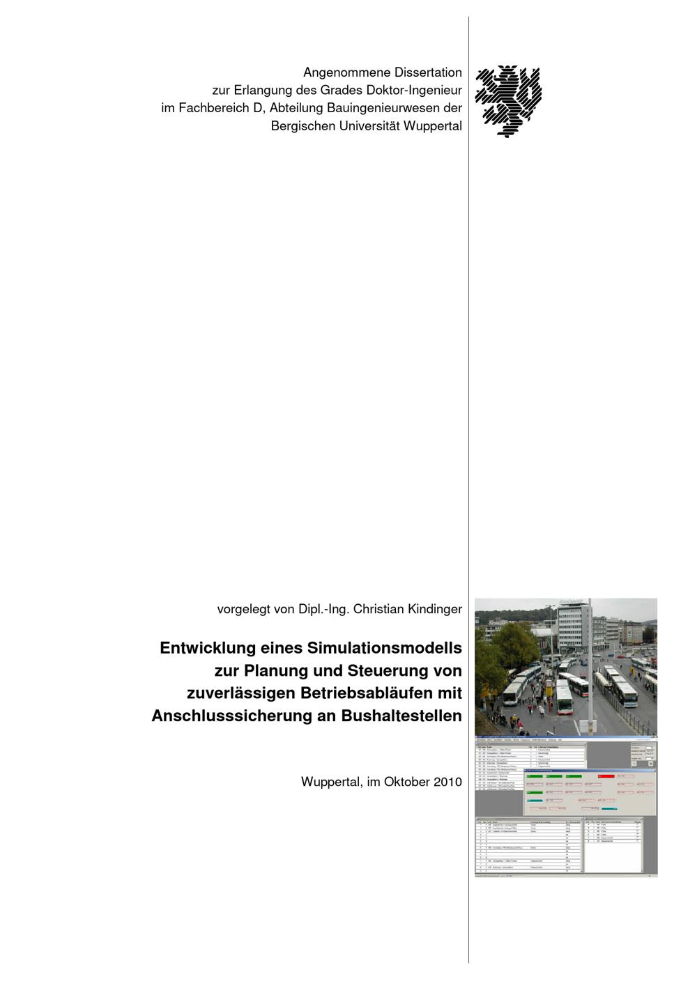Entwicklung eines Simulationsmodells zur Planung und Steuerung von zuverlässigen Betriebsabläufen mit Anschlusssicherung an Bushaltestellen / von Christian Kindinger